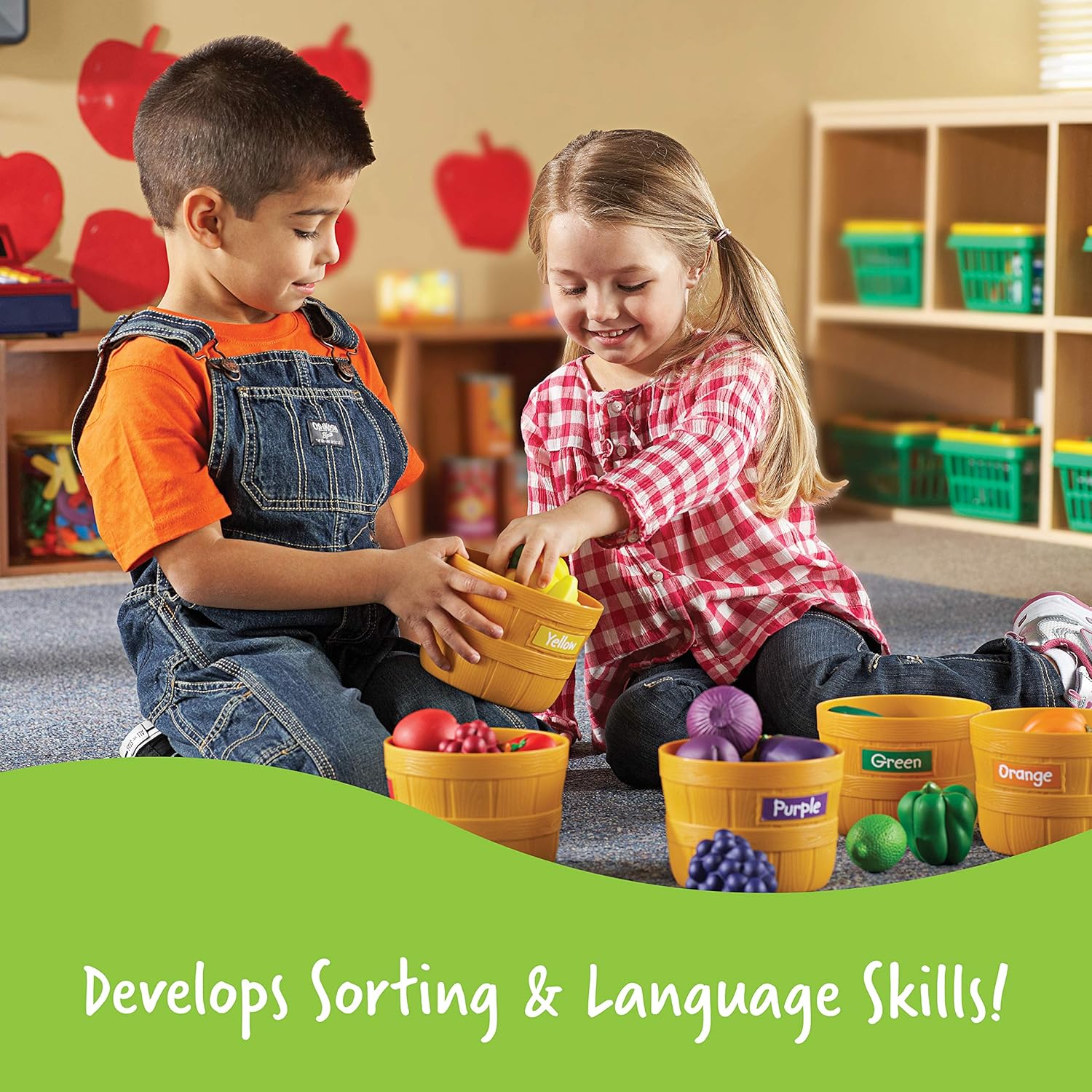 • Preschool-Ready Skills: With the help of color-coordinated play food and easy-to-visualize bushel baskets, kids build school-ready sorting and toddler color learning skills!