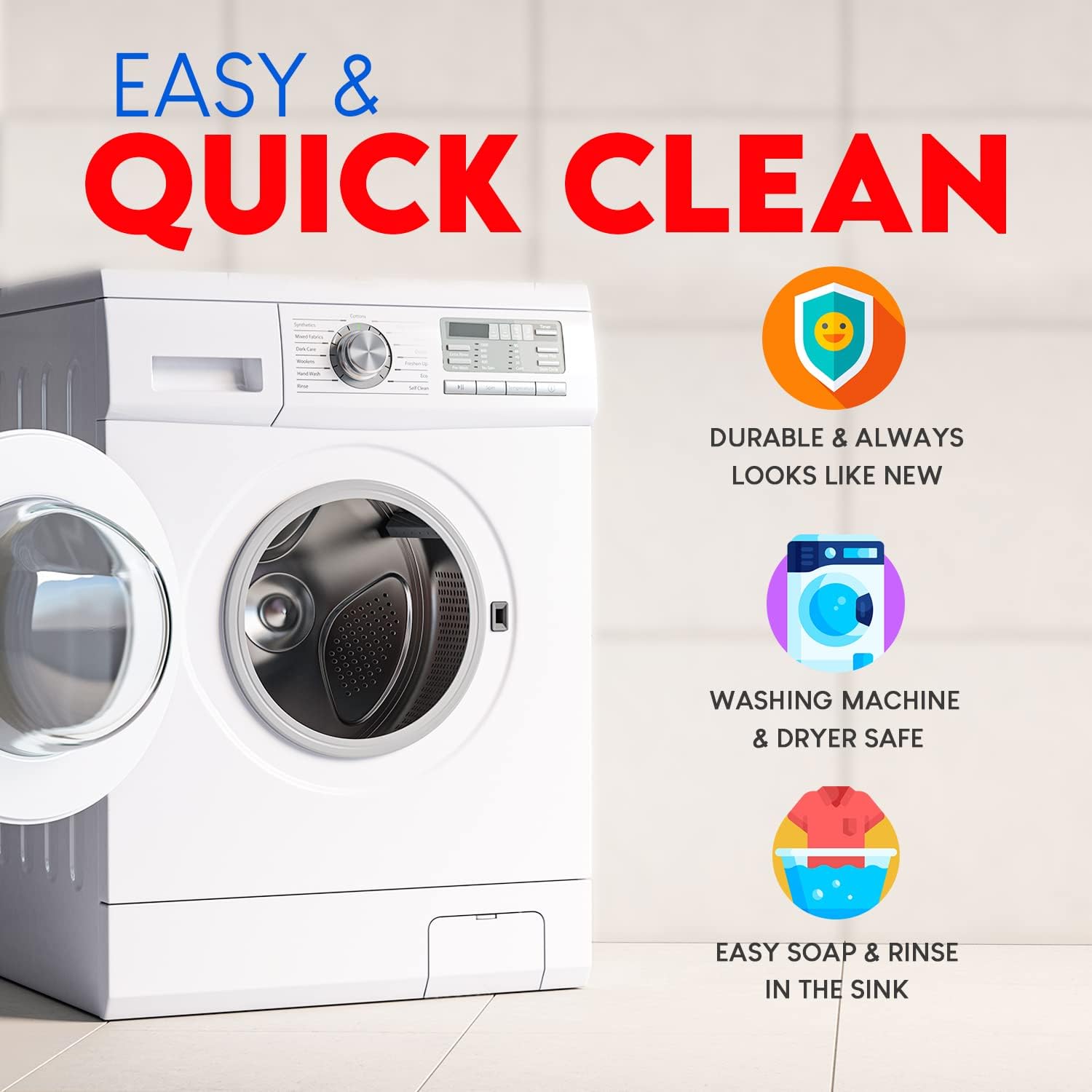 • EASILY CLEANS IN YOUR WASHER AND DRYER - Quickly wipes and washes. Safe for your washer and dryer. Or simply rinse in the sink with soapy water. Long lasting bibs always look like new. Baby bibs air-dry in about 30 minutes. But it's best to put them in the dryer on low or medium for 5 to 15 minutes. Tip: Make sure bibs dry completely to prevent black dots from appearing.