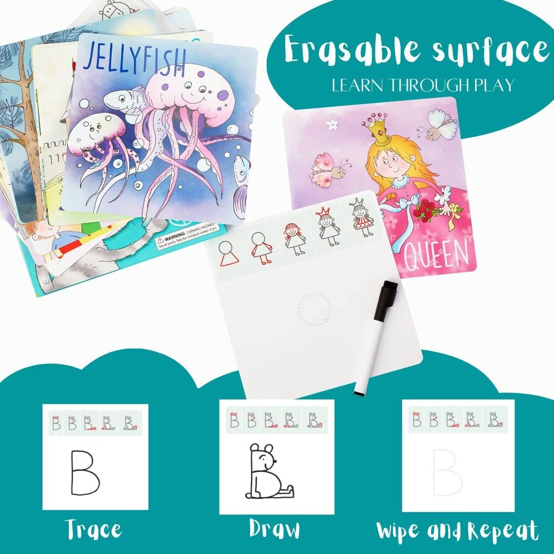 • Included: 1 Box, 26 sturdy ABC 8" x 8" (20 x 20 cm) two-sided flashcards, 1 dry erase marker. Perfectly sized for portable writing practice for kids. This activity is suitable for 3-6 years old preschool, kindergarten, home school classroom perfect toddler learning activities ages 3-6 games.