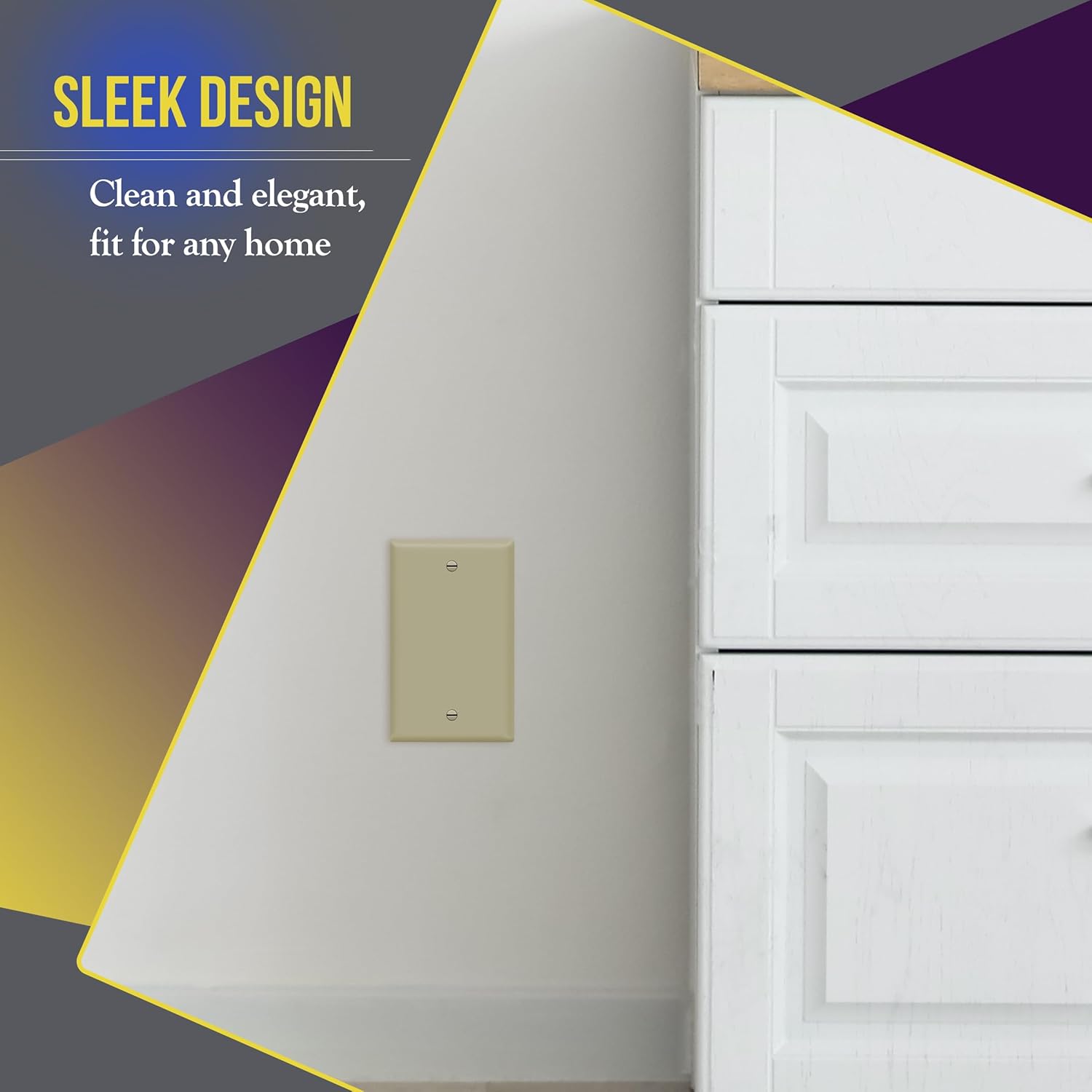 ENERLITES Blank Device Wall Plate, Gloss Finish, Standard Size 1-Gang 4.50" x 2.76", Polycarbonate Thermoplastic, 8801-I, Ivory