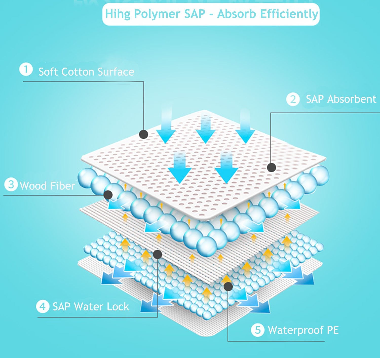• * Under pads with polymer SPA offer extra absorbency and protection, Highly absorbent, soft fluff fill with SAP