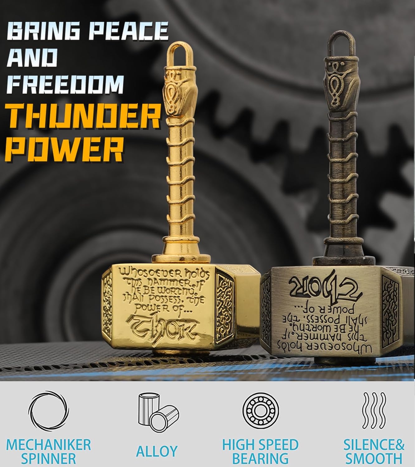 • Gift Package:1*Golden Thor Hammer Fidget Spinner;1*Bronze Thor Hammer Fidget Spinner;Preimum Packaging; 30 Days Worry Free 100% Money Back for Any Issue.