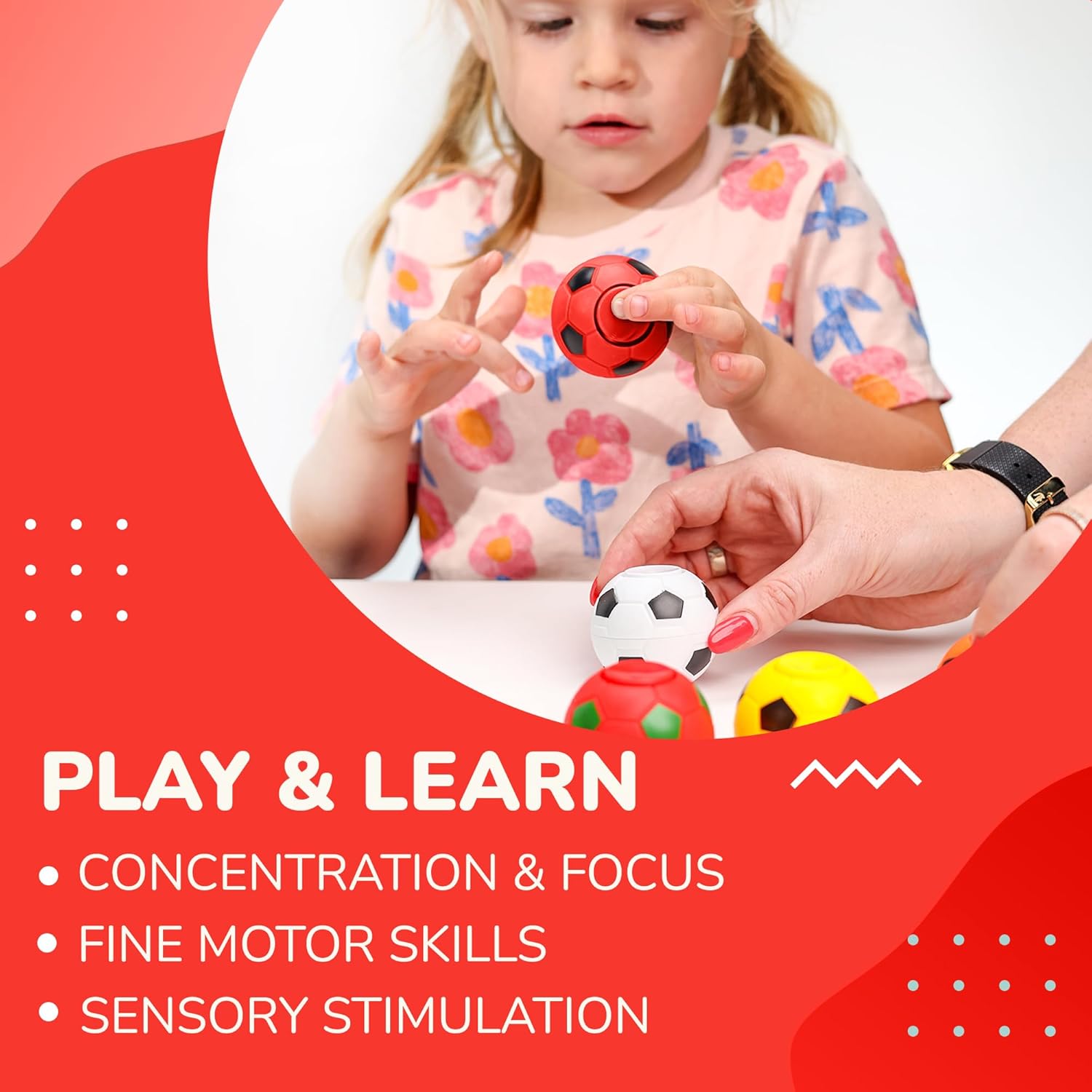 • Spinner toy have a red color. Spinner toys for kids resemble a soccer ball