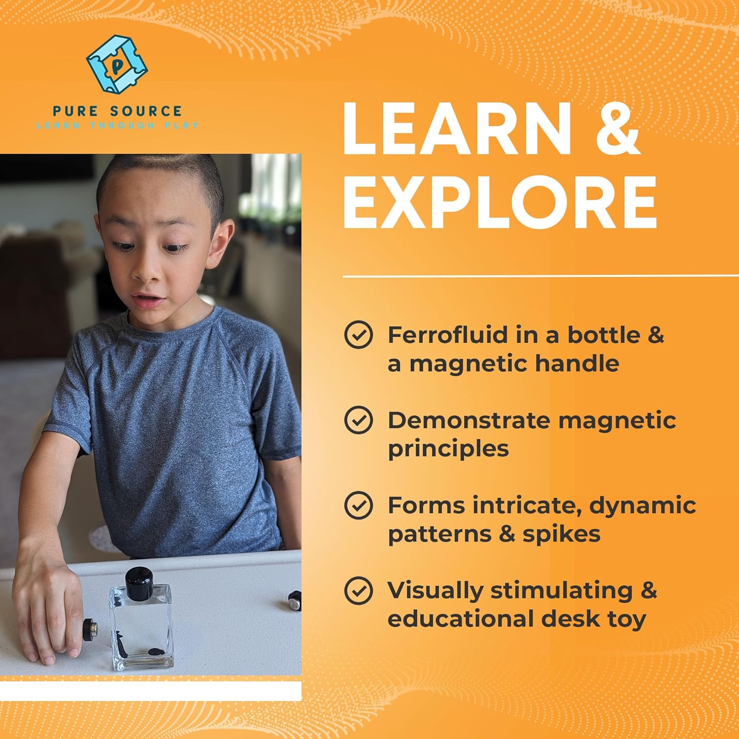 • IDEAL EDUCATIONAL GIFT: Spark a passion for science with the FerroFluid Display, the perfect desk toy for aspiring engineers and scientists, enhancing their collection with a magnetic fluid spectacle. The Ferrofluid Bottle contains 2ml of our premium ferro fluid, creating mesmerizing levitating magnetic spikes upon the approach of a magnet.