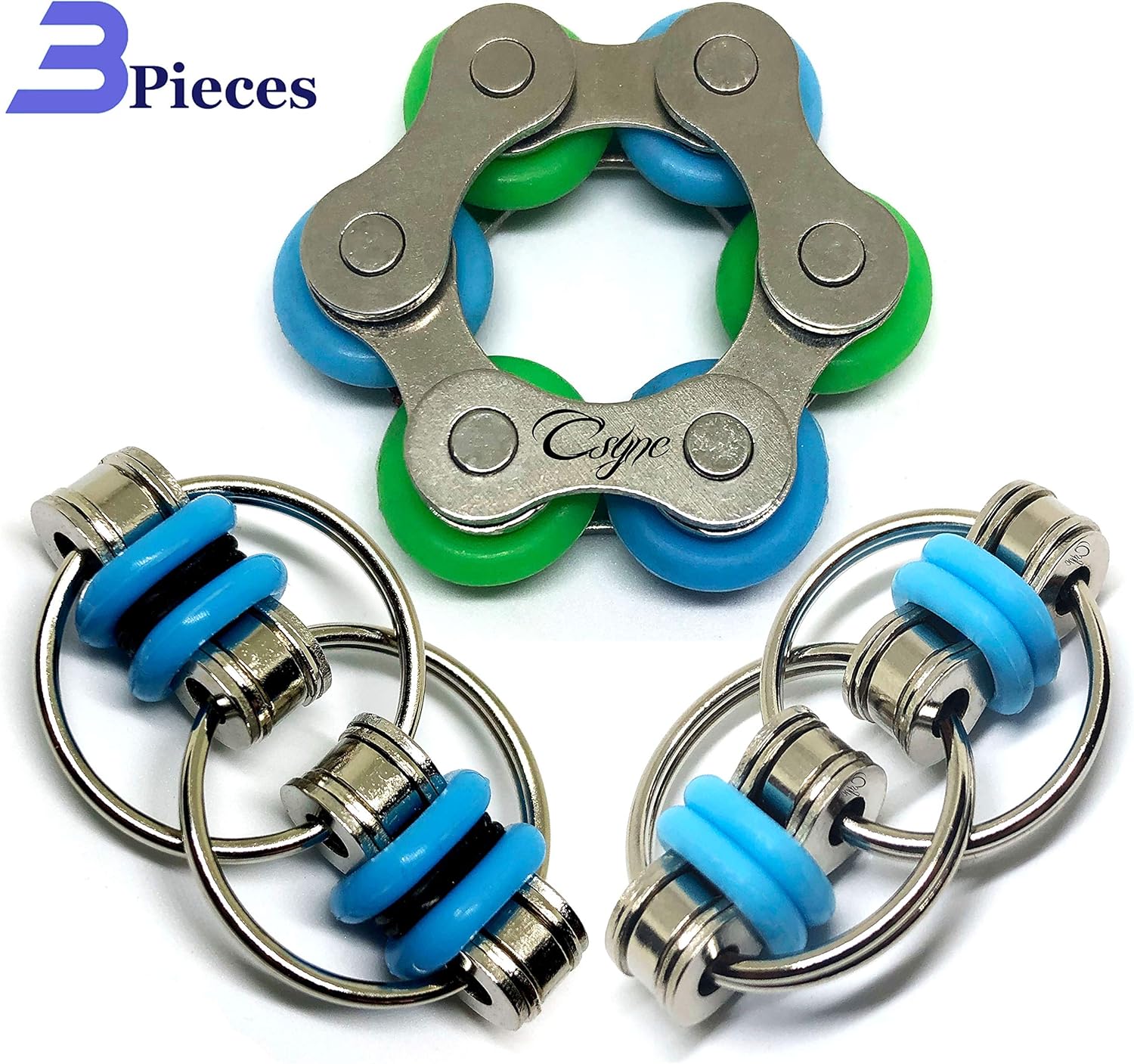Fidget Roller Chain finger exerciser - Stress Relief Perfect for ADHD, ADD, Anxiety in Office, Studying or work Stocking Stuffers Gifts (3 Piece) (Blue)