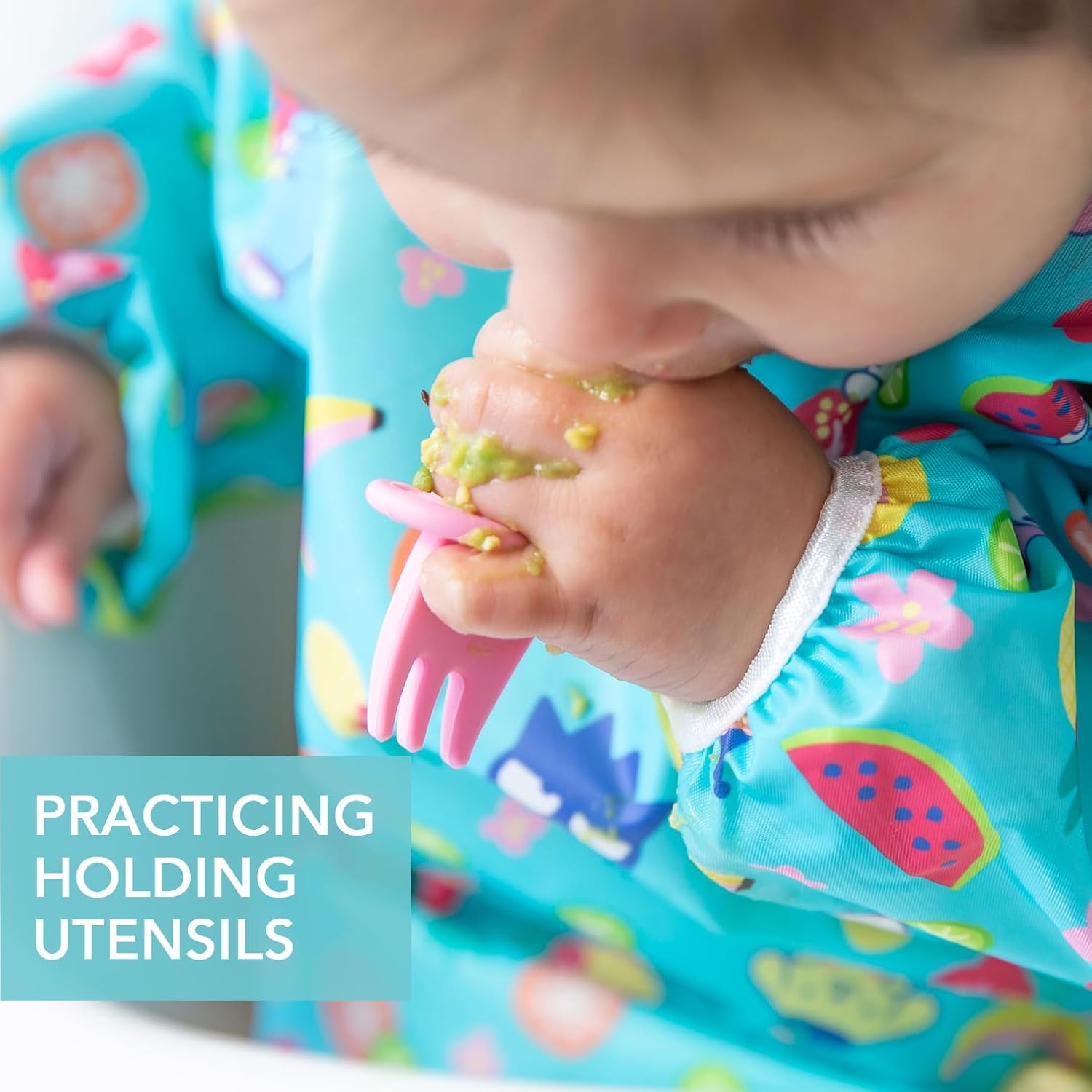 Bumkins Baby Utensils Set, Chewtensils Silicone Spoons for Dipping, Self-Feeding, Baby Led Weaning, Trainer Learning, First Stage Eating, Soft Practice Fork and Spoon, 6 Months, Hello Kitty Pink