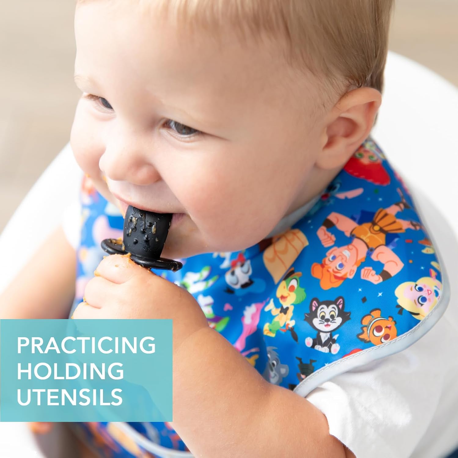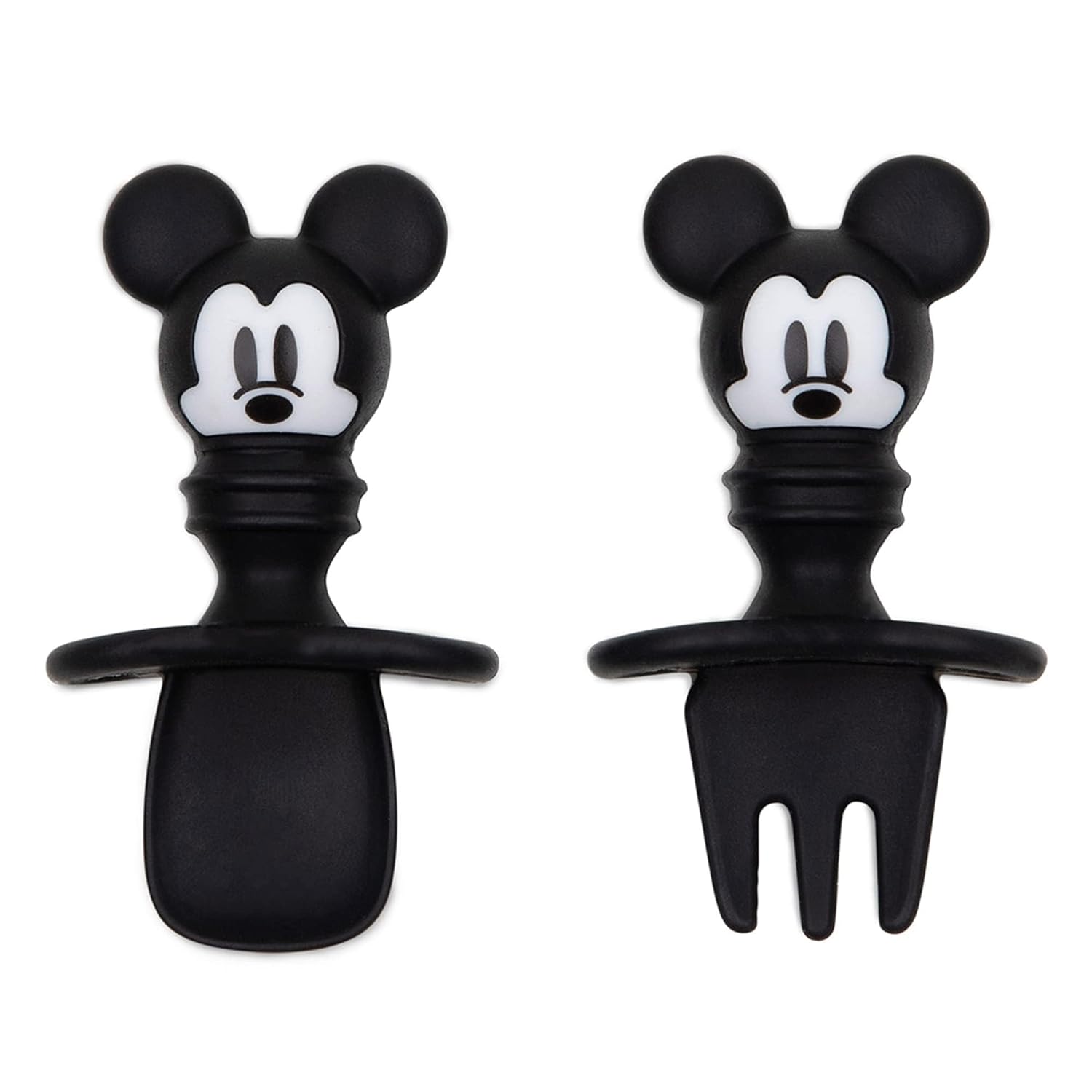 Bumkins Disney Baby Utensils Set, Chewtensils Silicone Spoons for Dipping, Self-Feeding, Baby Led Weaning, Trainer Learning First Stage Stage Eating, Fork and Spoon, Babies 6 Months, Mickey Mouse