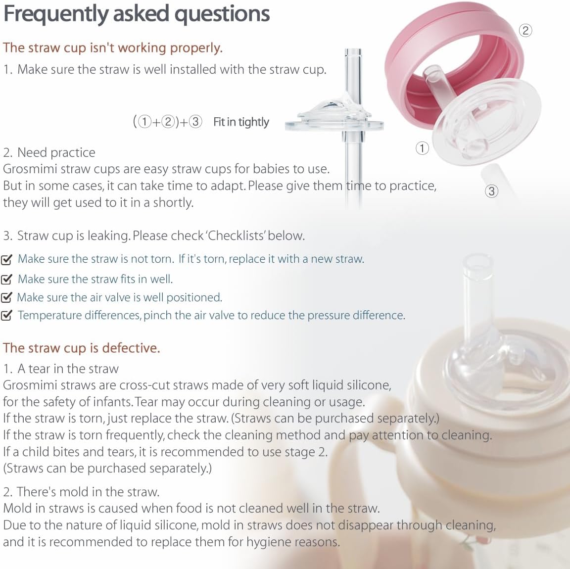 • SILICONE STRAW : Super soft straw is just right for your baby's gums. The straw is made of same material with baby nipples. Babies will get used to straw without resistance.The cup comes with Stage-1 straw. Stage-1 and Stage-2 straws can be purchased separately