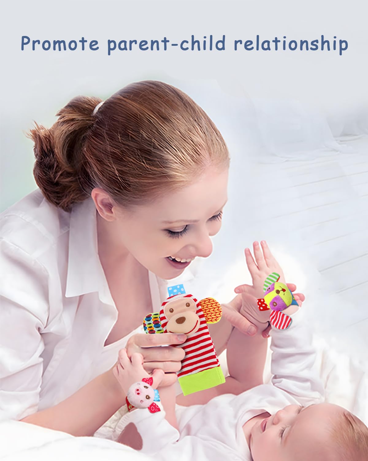 Soft Baby Rattle Toys Foot Finder Socks Wrists Rattles, Ankle Leg Hand Arm Bracelet Activity Rattle, Present Gift for Newborn Infant Babies Boy Girl Bebe 4pcs