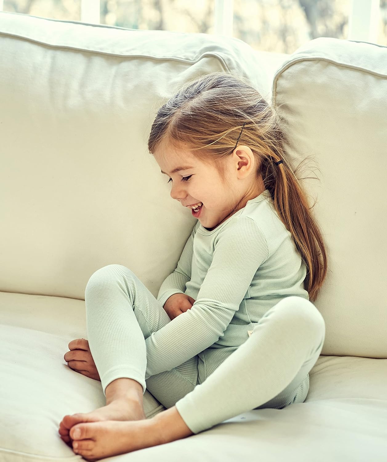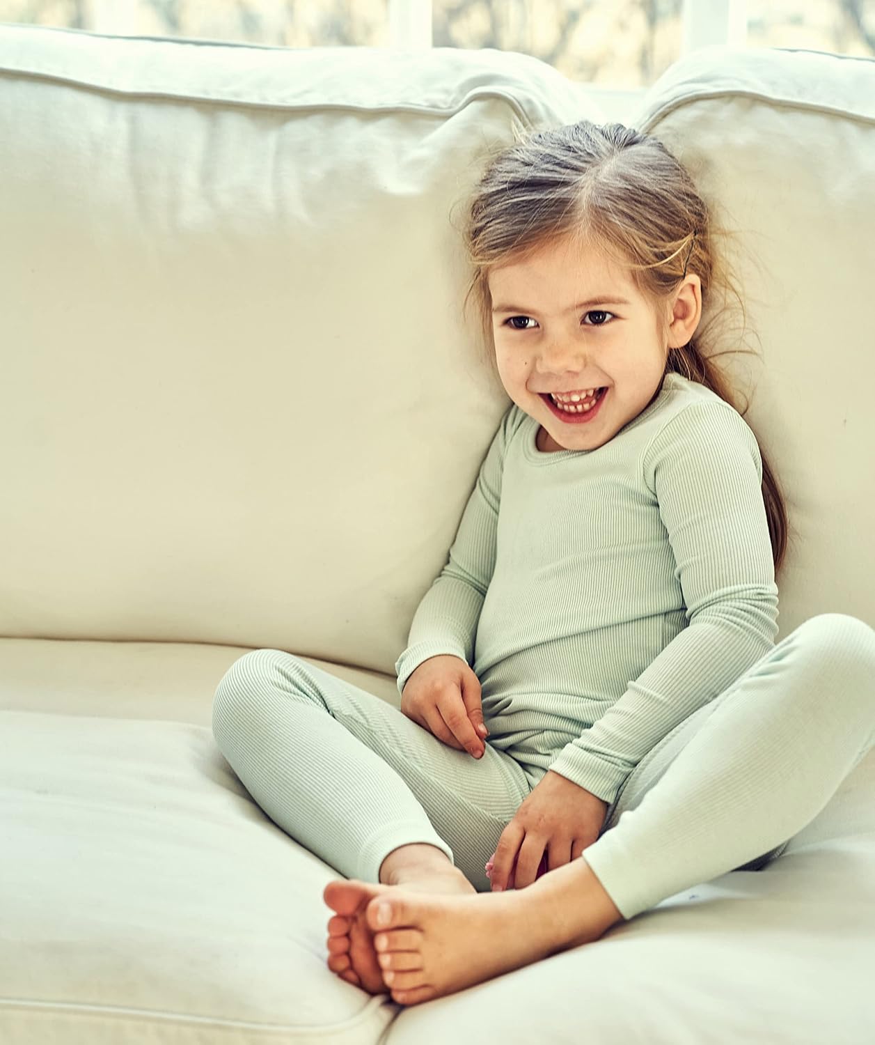 • COMFORTABLE FABRIC - This stylish pj set is a perfect blend of multi-functional style and comfort ribbed knit. Viscose rayon is like a smooth material similar to silk breathable, similar to cotton in this regard. Enough to help protect child's delicate skin. That's why pajama set is Easy to dye, light weight, and natural material. It will give perfect fit.
