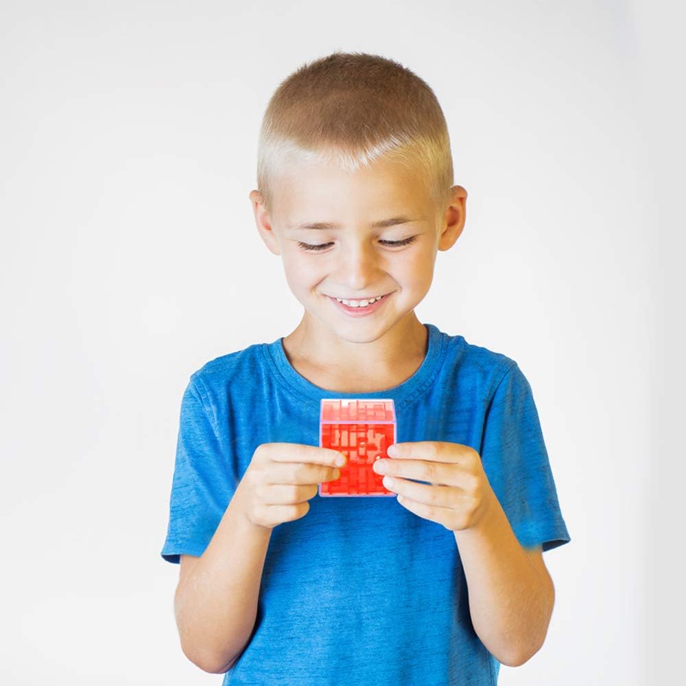 • A MAZE OF FUN: Work the little ball through the maze with smile-sparking twists and turns! This SET OF 3 includes 1 red, 1 blue, and 1 green puzzle cube that promises hours of fun. Since each maze puzzle cube measures a portable 2”, taking them on the go is a breeze.