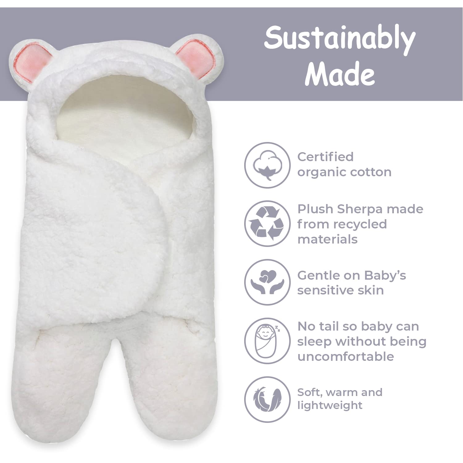 • QUALITY PLUSH SUSTAINABLE FABRICS- Made with organic cotton and incredibly soft Sherpa made from recycled polyester, making our baby swaddle blanket the softest around! Designed in the USA.