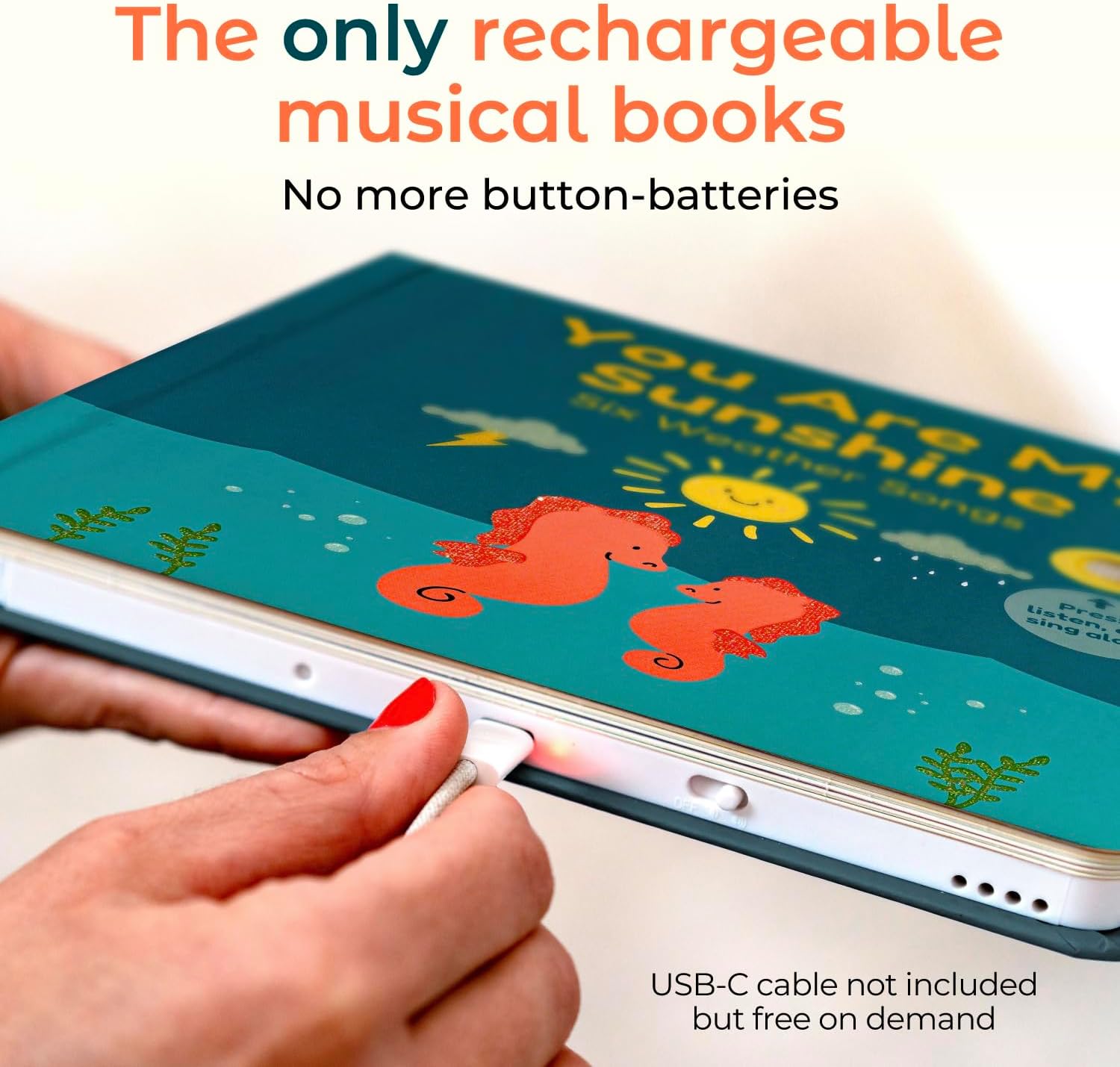 • USB-C Rechargeable: Our toddler books ages 1-3, like this USB-C rechargeable Wheels on the Bus, offer endless fun without the battery hassle. They are perfect musical toys for toddlers 1-3 and great interactive books for 1 year olds!