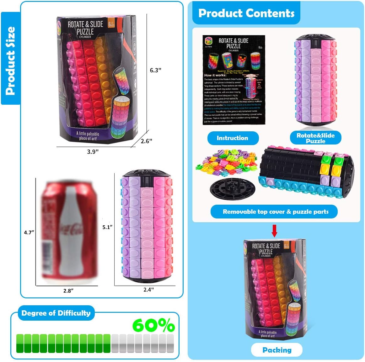 - 【 Uses 】Unlike other brain games,the patented,critically acclaimed cube puzzle is a unique toy and unique gift,it is a combination of rotating magic cube and slide puzzle,each puzzle piece can be rotated from up and down with a whole column around the axis as well as be slided left and right on a row