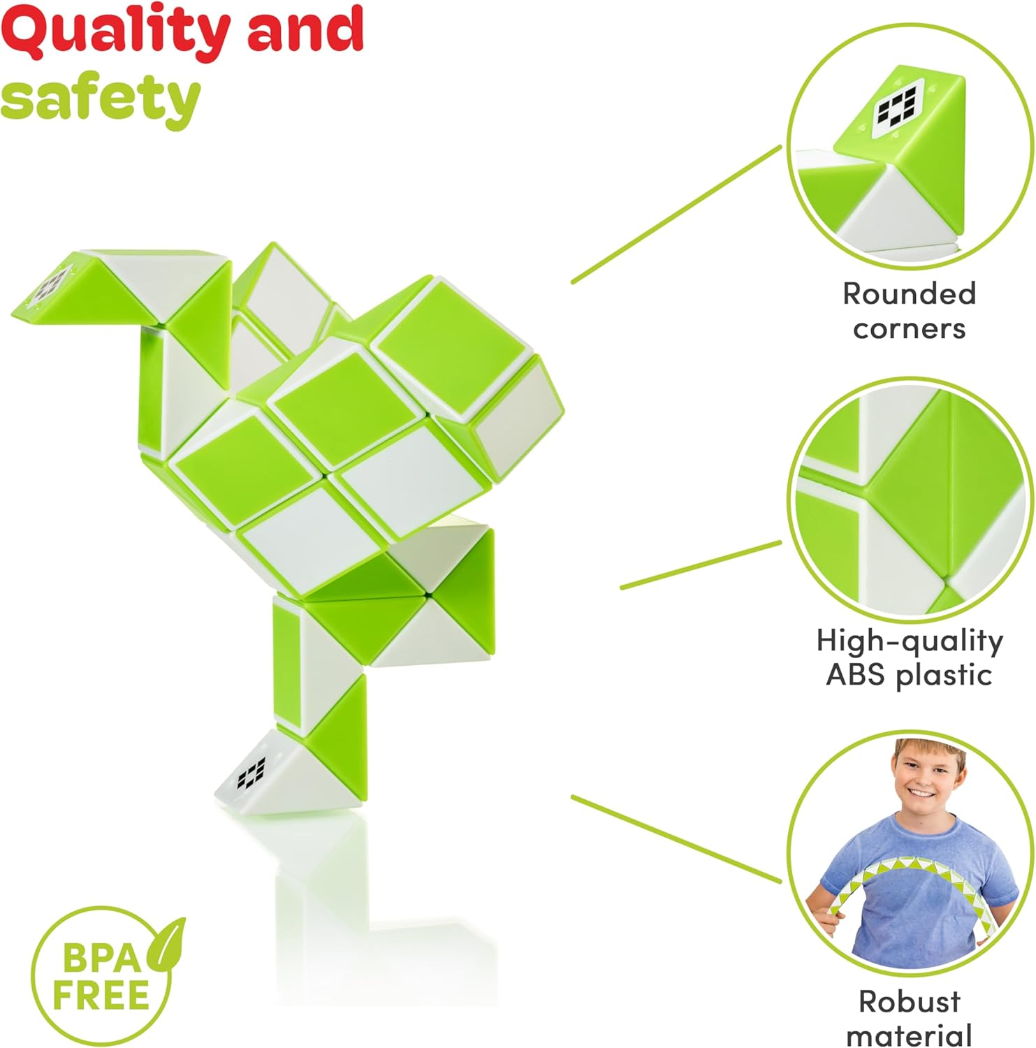 CUBIDI® Magic Snake Cube | Fidget Snake Toy for Kids | Travel Toys for Kids Ages 4-8 | Great Gift for Boys and Girls Birthday, Christmas, Stocking Stuffers - 36 Blocks | 0.9 inch x 0.7 inch | Green