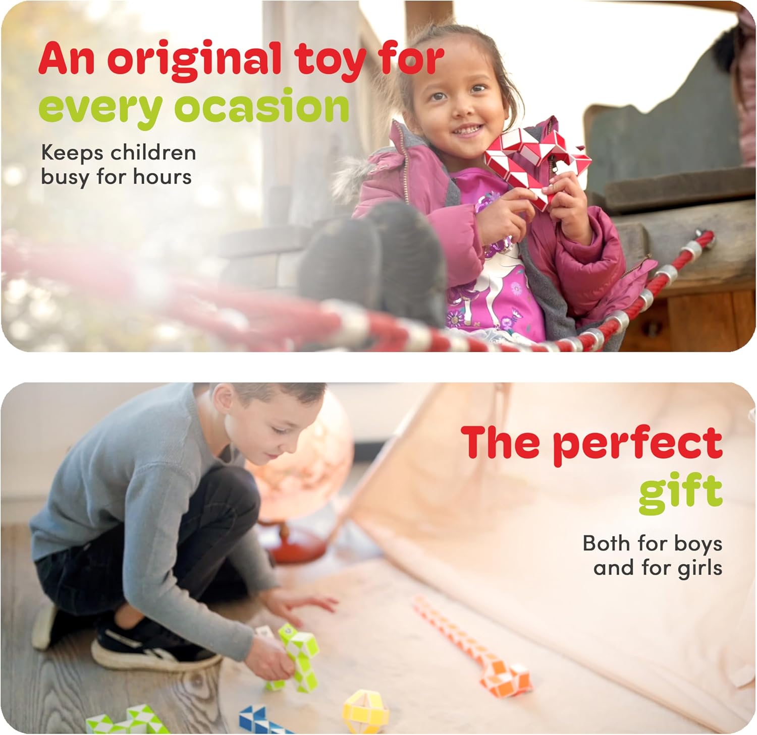 • 1 TOY WITH 100 SHAPES: Create with this snake fidget toy over 100 different figures like a dog, cat or elephant. This fidget snake cube fascinates kids and they love to play with it. Magic snake toy is for kids ages 4-8
