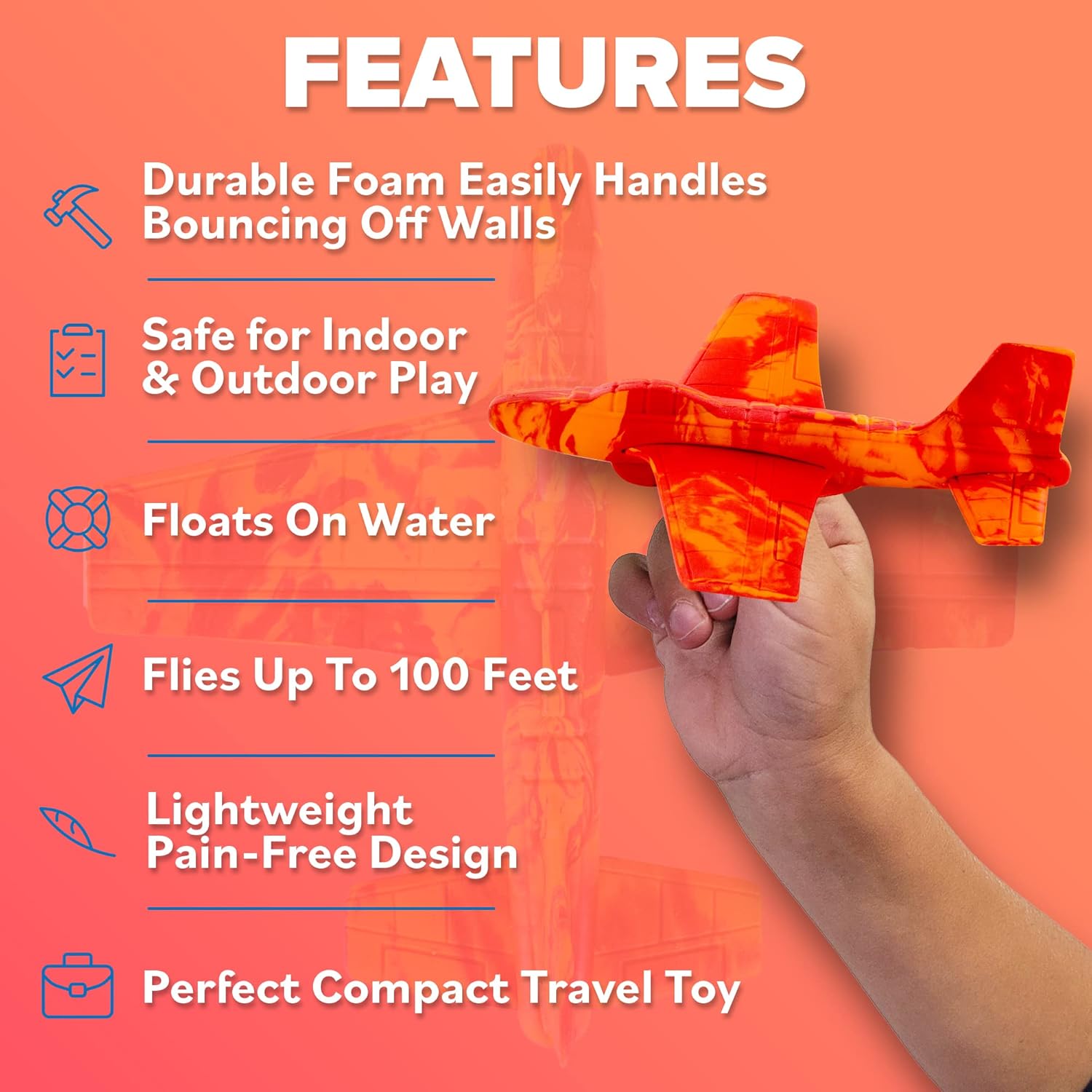 Airplane Toy Foam Glider Plane for Kids: Best Outdoor Beach Toys for Boys & Girls - Pool Toys for Kids & Fun Flying Gliders Easy Throwing Air Planes - 4 Year Old Boy Birthday Gift 5 6 7 8 9 2-4 8-13
