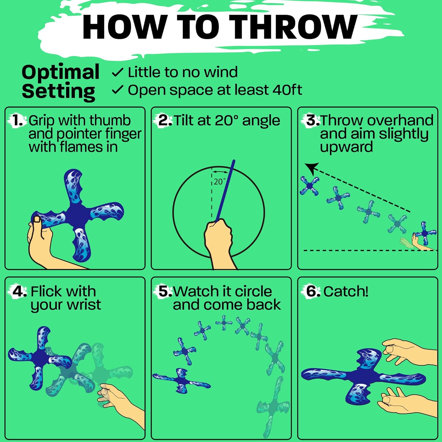 • 𝗣𝗲𝗿𝗳𝗲𝗰𝘁 𝗚𝗶𝗳𝘁 𝗙𝗼𝗿 𝗕𝗼𝘆𝘀 & 𝗚𝗶𝗿𝗹𝘀: Discover a hit toy that your kids won't get bored of. Its ease of use and safe lightweight design that doesn't hurt your fingers make it an excellent toy for kids all ages. Consider adding this boomerang to your gift list to ensure your kids receive a gift they will have fun using all while being active.