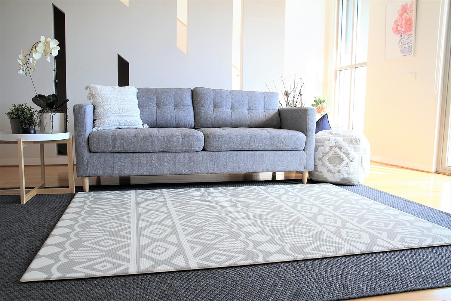 Cushmat Stylish Reversible Foam Play Mat (Large, Crystals - Gray Pink) - Soft, Waterproof, Durable Play mat for Infants, Babies, Toddler, Kids & Grownup - 6.5ft x 4.5ft