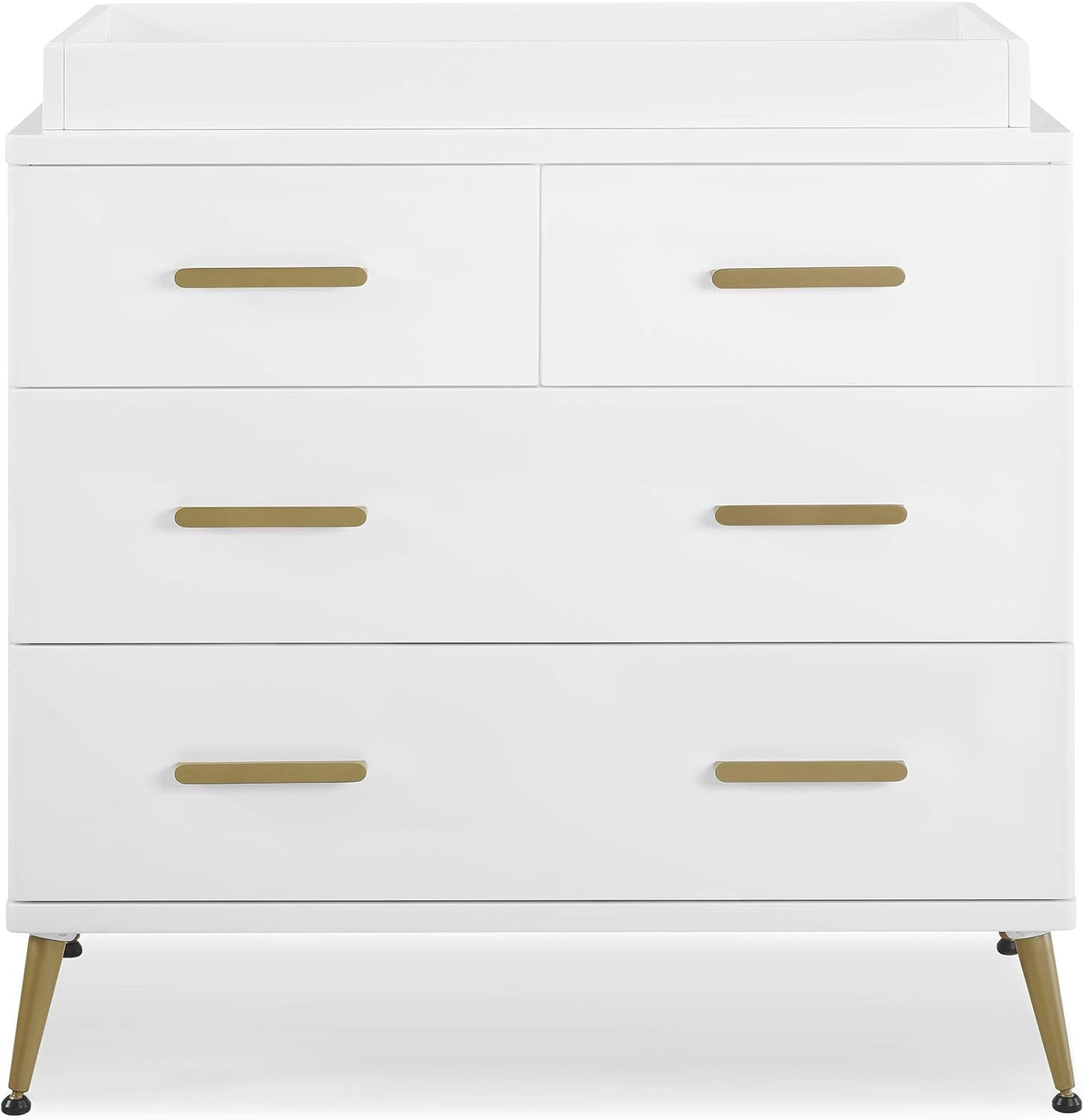 Delta Children Sloane Crib 7-Piece Baby Nursery Furniture Set–Includes: Convertible Crib, Dresser, Changing Top, Crib Mattress, Fitted Sheets, Toddler Guardrail & Changing Pad, White w/Melted Bronze