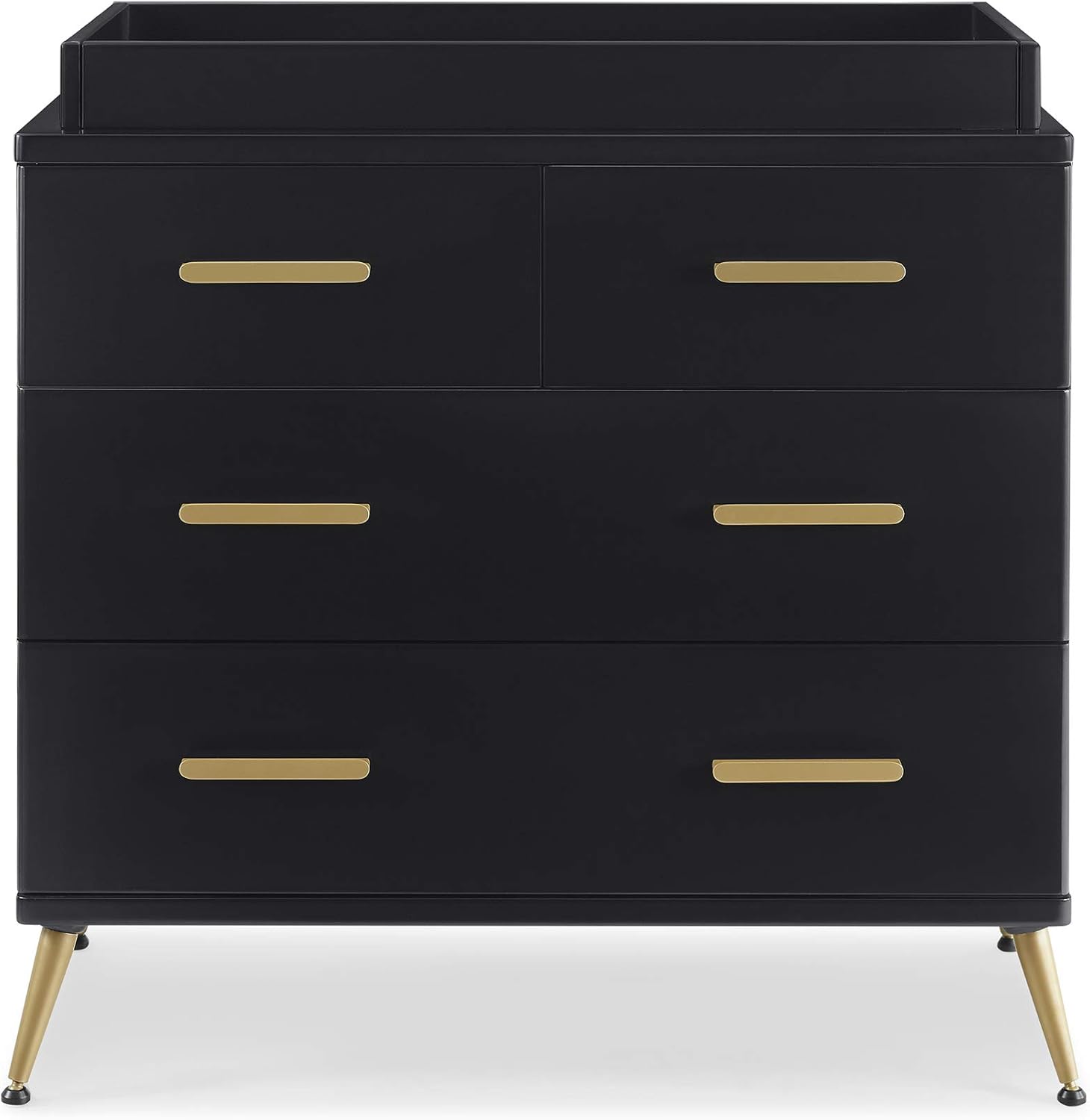 Delta Children Sloane Crib 7-Piece Baby Nursery Furniture Set–Includes: Convertible Crib, Dresser, Changing Top, Crib Mattress, Fitted Sheets, Toddler Guardrail & Changing Pad, Black w/Melted Bronze