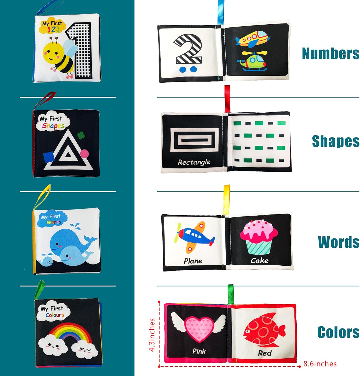 Soft Cloth Baby Book Toy 0-6 Months, Black White Baby Learning Book(Pack of 4),Touch and Feel Crinkle Book Infants 6-18 Months,Early Educational Toy 0-3 Months, Gift for Babies Infants