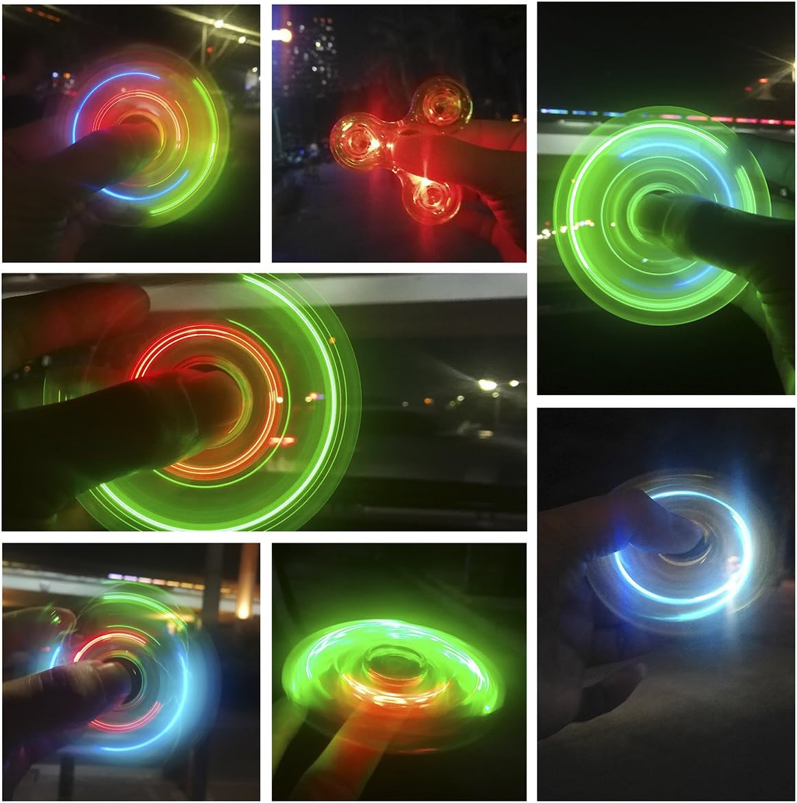 • 【LIGHT UP FIDGET SPINNERS】Our light up fidget spinners for children feature LED lights with three flashing modes, each operating independently. You can easily switch between different multicolored styles, and the various light up patterns look stunning. Simply press the button on each wings of the LED fidget spinners to experience wonderful colors and patterns that create a mesmerizing glow in the dark.