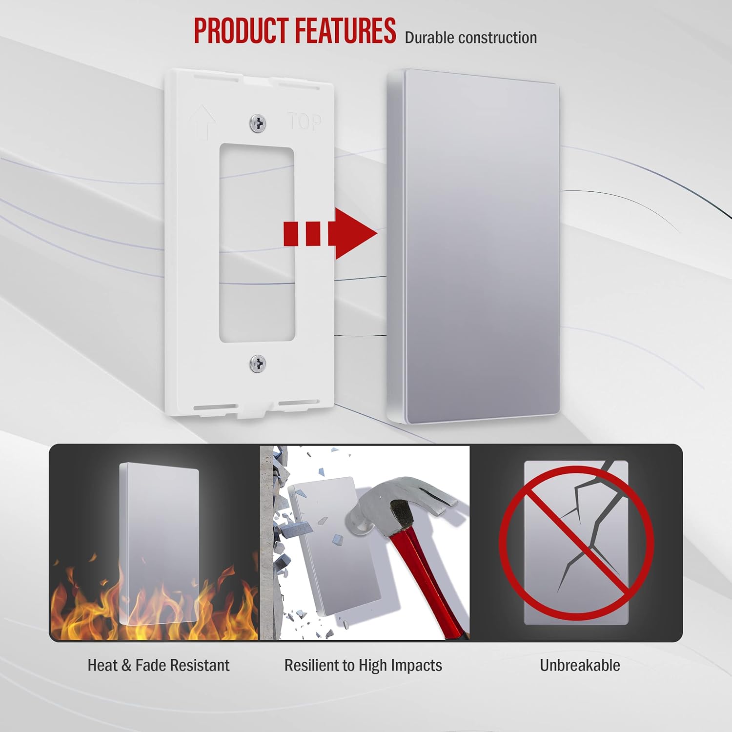 • Easy replacement of any wall plate of the same configuration; standard size dimensions: 4.68" height x 2.93 length
