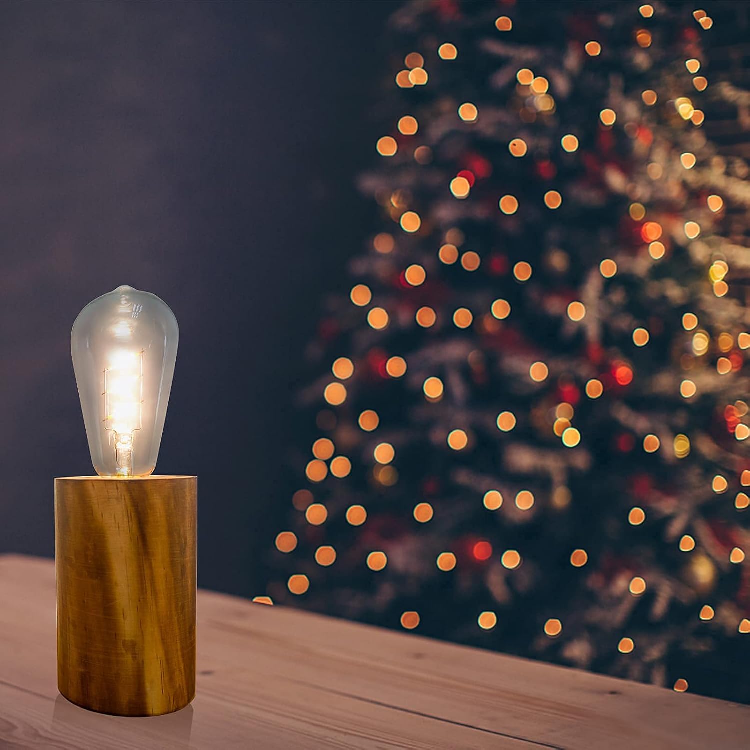 YiShine Battery Operated Table Lamp Wood Night Light Decorative Table Light for Bedroom Living Room Lights Bedside Table Lamp Desk Decorative Lights Bright Light Festival Home Decoration(Single)
