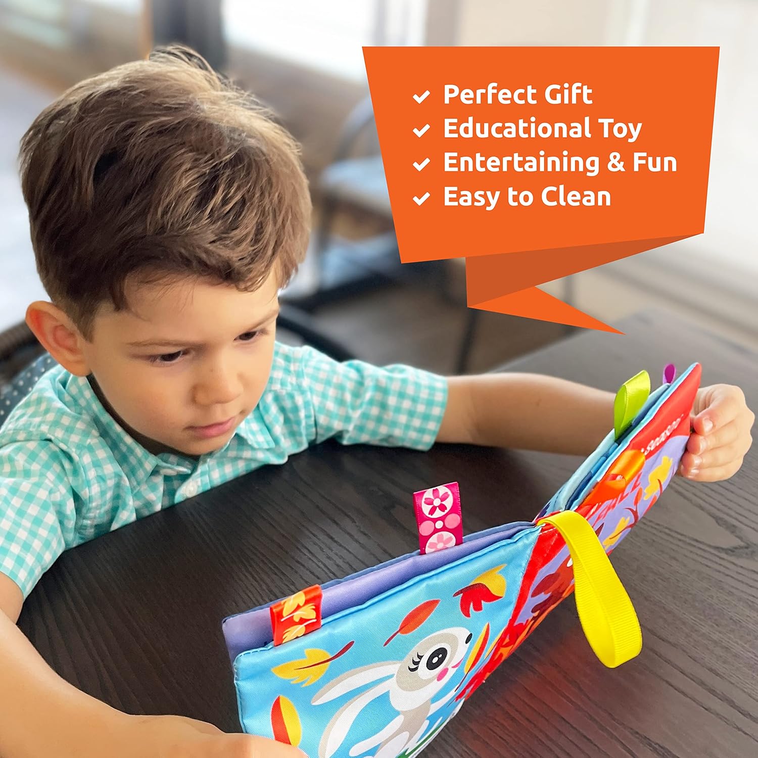 • CRINKLE PAGES & COLORFUL HOOKS – Crinkle pages will attract your baby’s attention while colourful hooks encourage tactile exploration and fine motor development. The hooks are made from silky soft material and come in different patterns and colours.