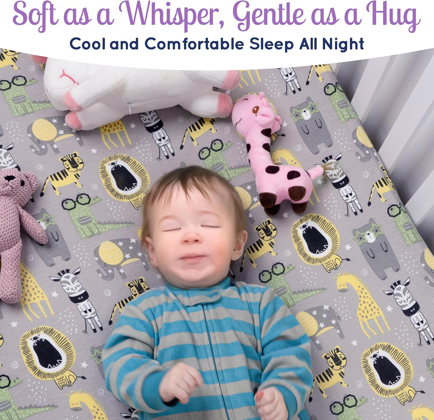 • 🌚FUN & CHARMING DESIGN - Our crib mattress sheets features an adorable Safari Jungle pattern. This charming design brings the calming essence of the sea into your baby boy nursery.