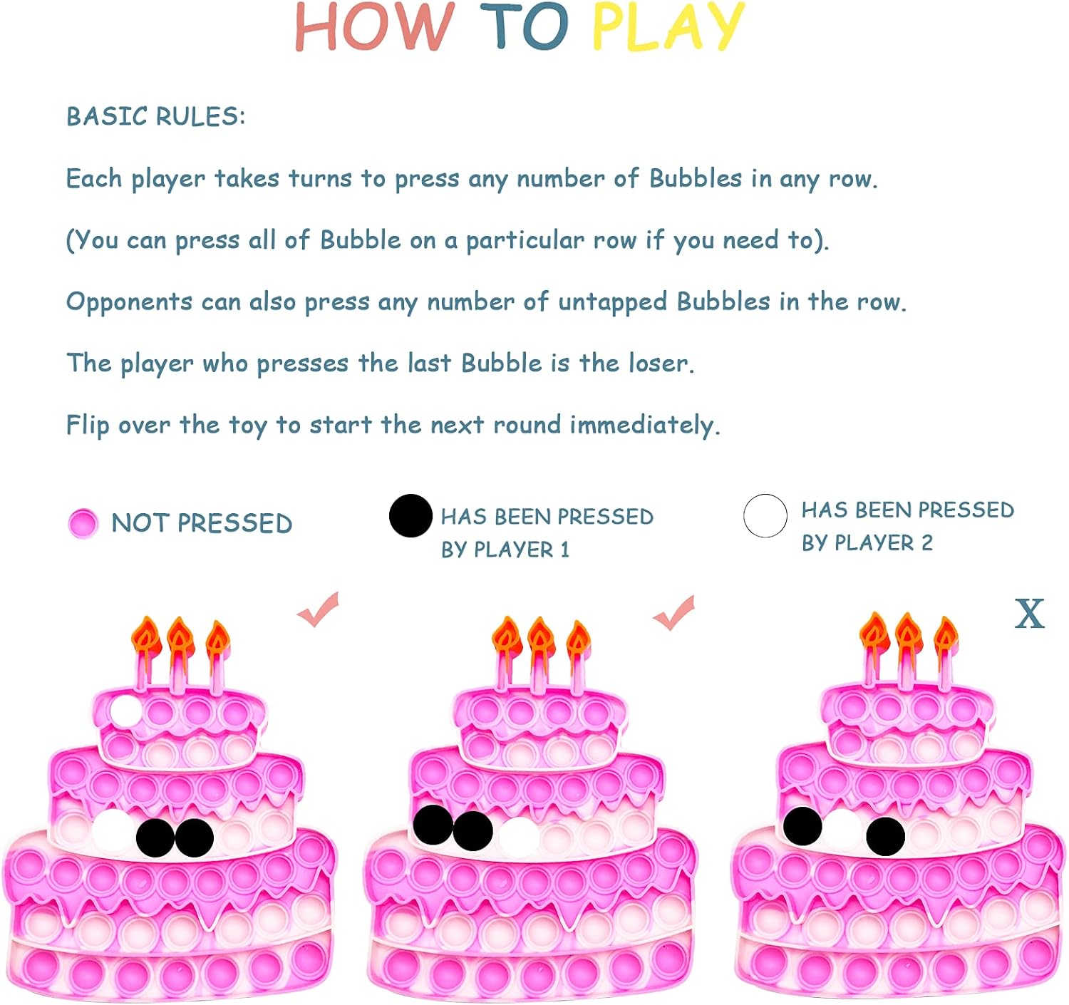 • 【fidget toys 4 pcs】5 packs: 1x gift fidget push bubble toys, 1x cake bubbles, 1x crown fidget bubble toy, 1 pizza push toy.