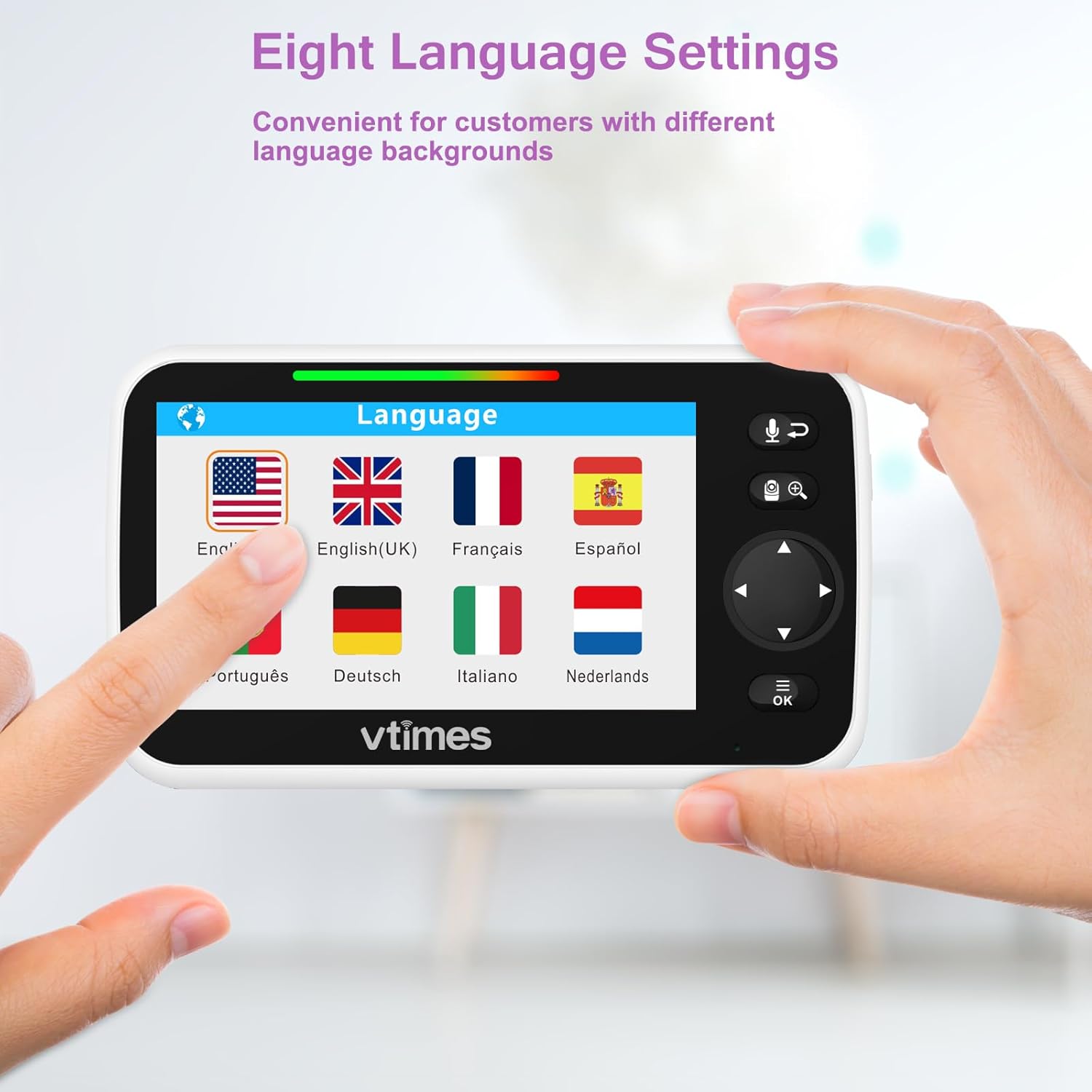 • 【5" LCD Display & Wireless Technology】- The large 5'' LCD color screen baby monitor features a High Resolution Display with 2x zoom magnification for comprehensive coverage via wireless technology, stable and private.
