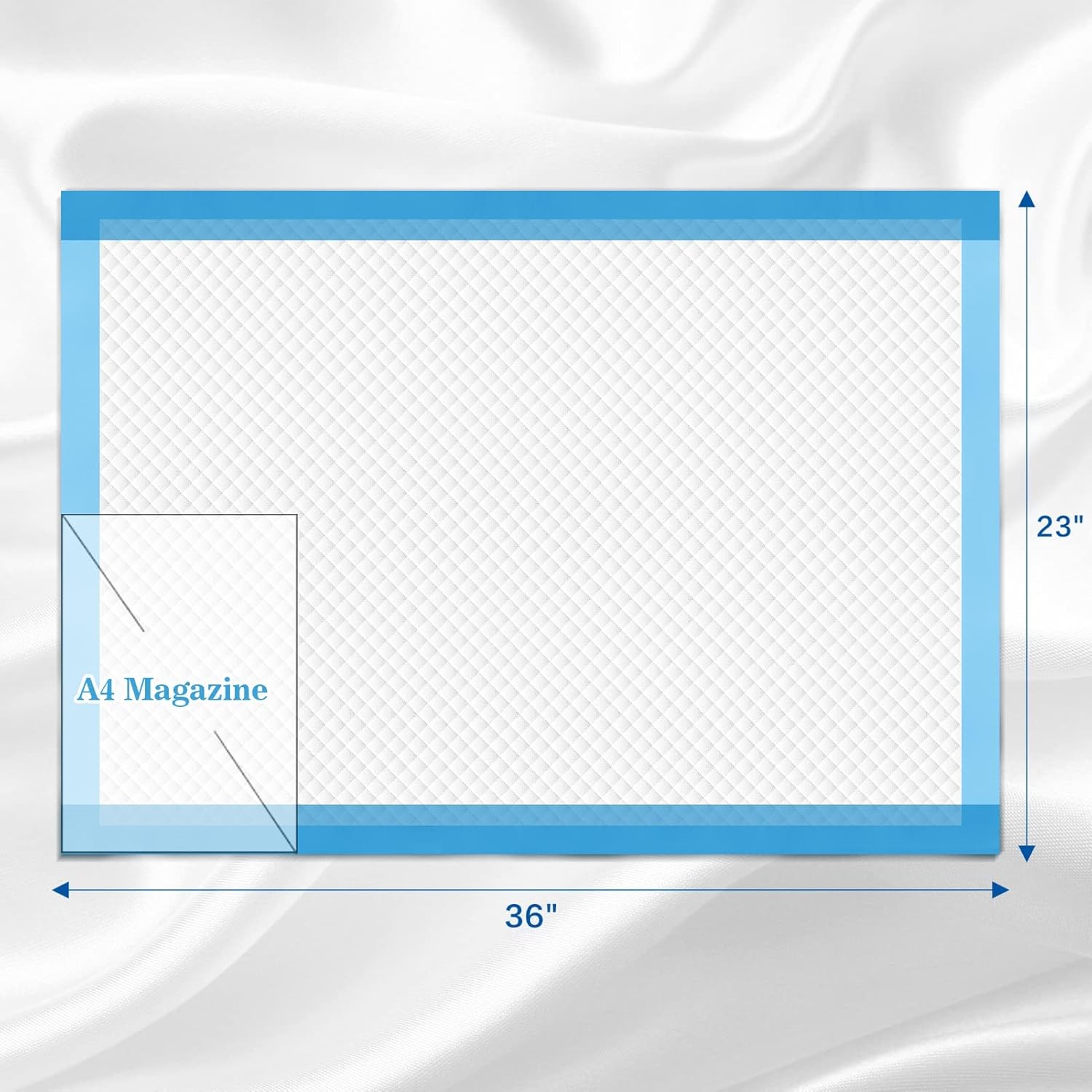 • Large Size and Super Absorbency:These disposable bed pads size in 23"x36"(60x90cm).Thicken pee pads with gelling polymer can lock in liquid quickly and keep it dry. 50/100/150 count are available to meet different needs