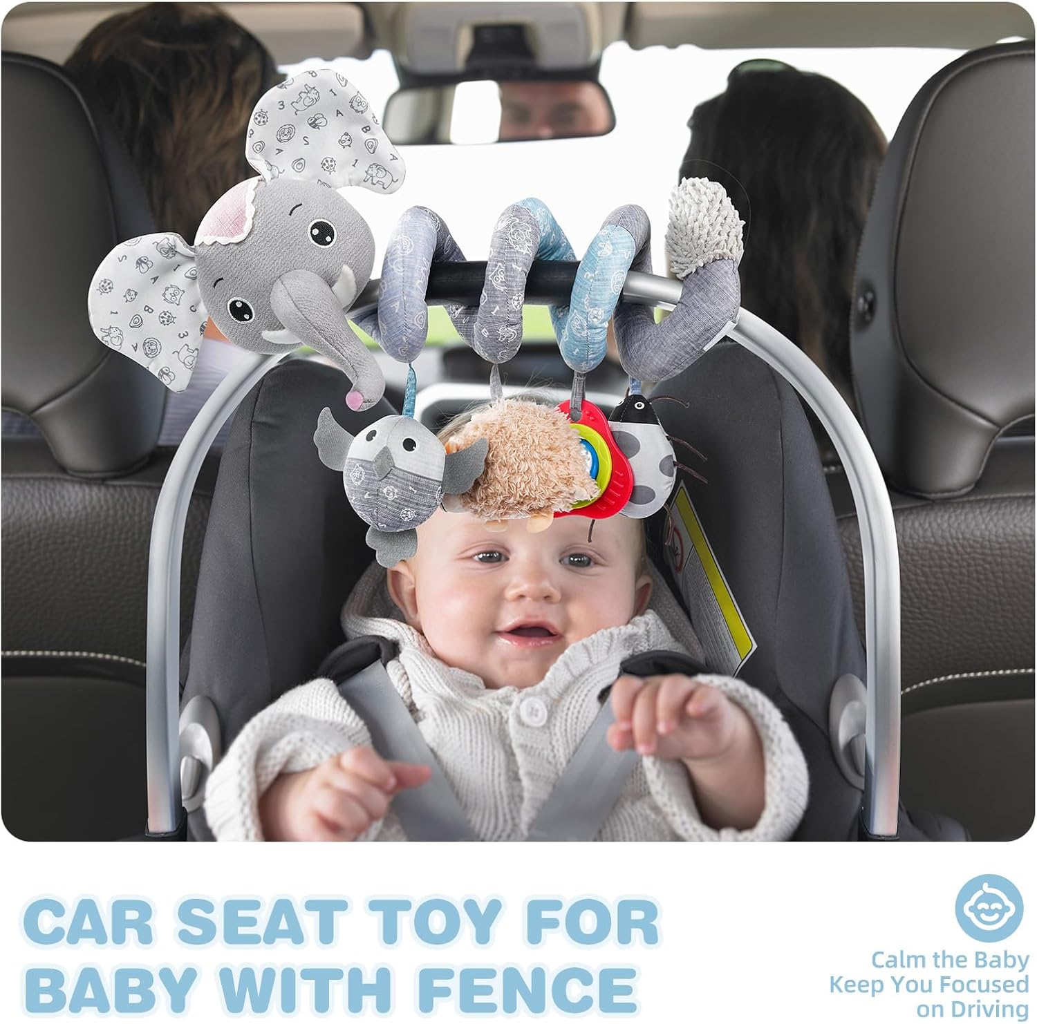 Jollybaby Baby Car Seat Stroller Toys, Plush Activity Hanging Spiral Activity Pram Crib with Music Box, Rattles, Squeaker for Babies Infant Boys Girls (SZ Gray Elephant)