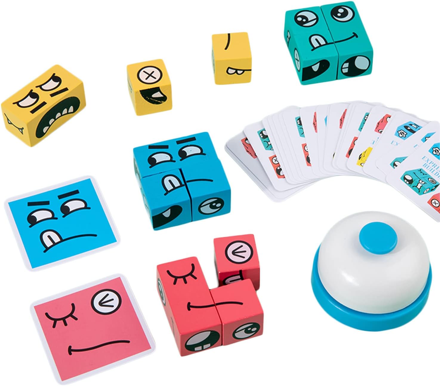 - EXPRESSION PUZZLE BUILDING BLOCKS GAME: Add excitement to your game collection with these vibrant wooden cubes and wacky challenges. This fast-paced head-to-head puzzle game combines the strategic Puzzle Building Cubes with thrilling face-to-face gameplay. Test your speed as you match the pattern on a card with your colored cubes. Be the first to succeed, grab the card, and start a new matching race. Perfect for hours of competitive fun!