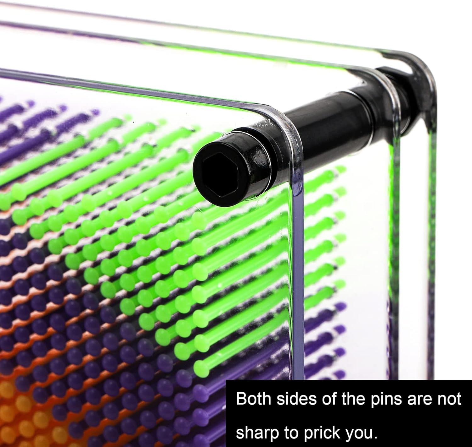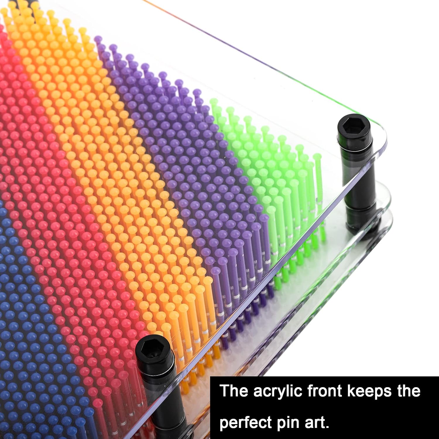 • Our plastic 3D pin art board is made of plastic pins and acrylic clear frame and front. The frame is sturdy to hold the pins and the front keeps the perfect pin art.