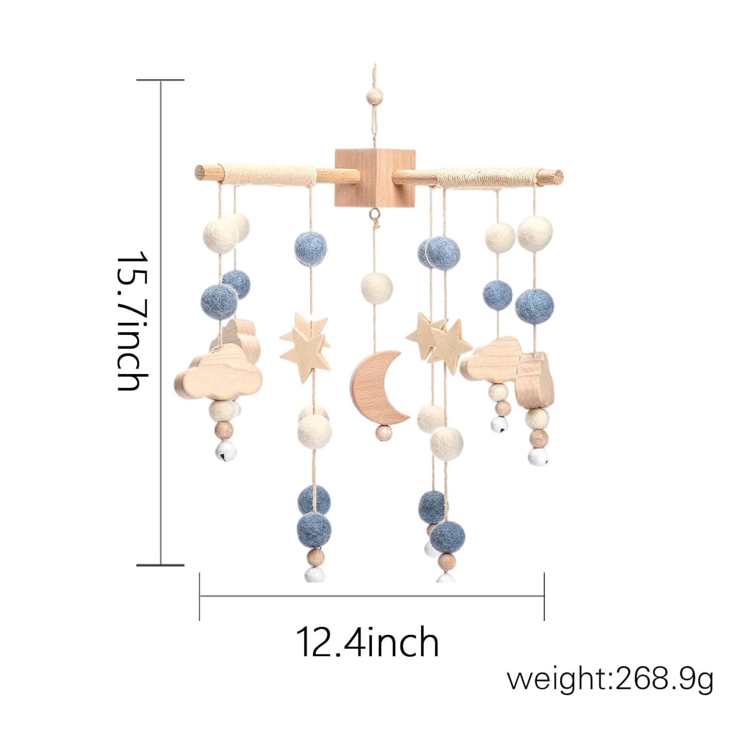 - 🌟【Engage & Delight Baby】:The gently swaying crib mobile will encourage your baby to focus and track, and the offset appendages help your little one explore the world to develop depth perception.They can be hung from hook in the ceiling or you can use a mobile arm attached to the baby crib,this not only helps your baby’s promote auditory, motor development and visual stimulation, and has a calming effect as baby settles into the crib or wakes from sleep.