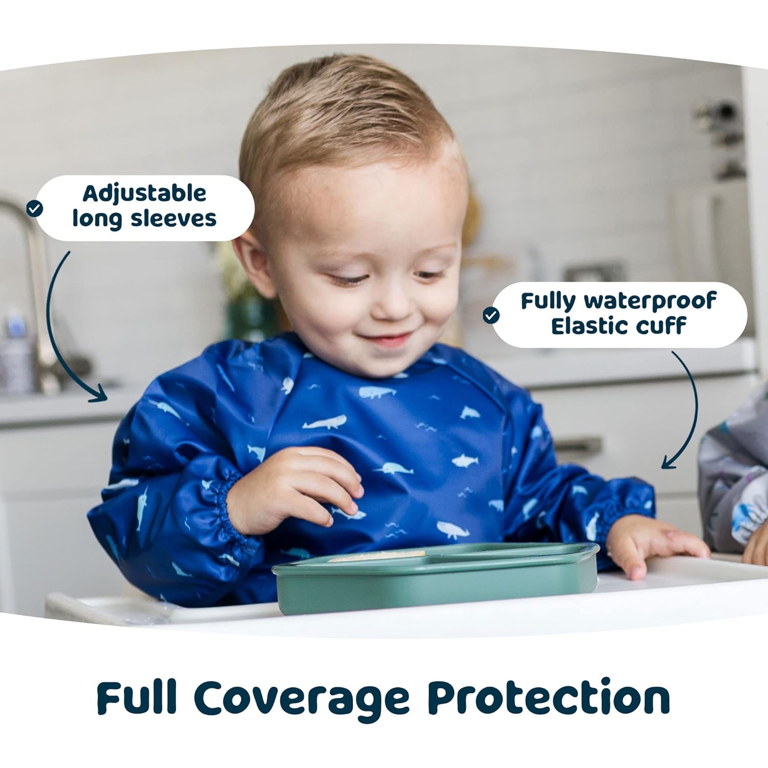 - EASY TO USE: Designed for baby-led weaning chaos, our waterproof baby bibs (6-24 months) feature a no-scratch closure that stays put during tugging but is also easy to remove. The 100% recycled polyester fabric wipes clean in seconds. New parents obsessed with baby feeding essentials love how these toddler-proof baby bibs transform messy high chair meals into stress-free bonding time. Perfect for baby bibs or toddler bibs.