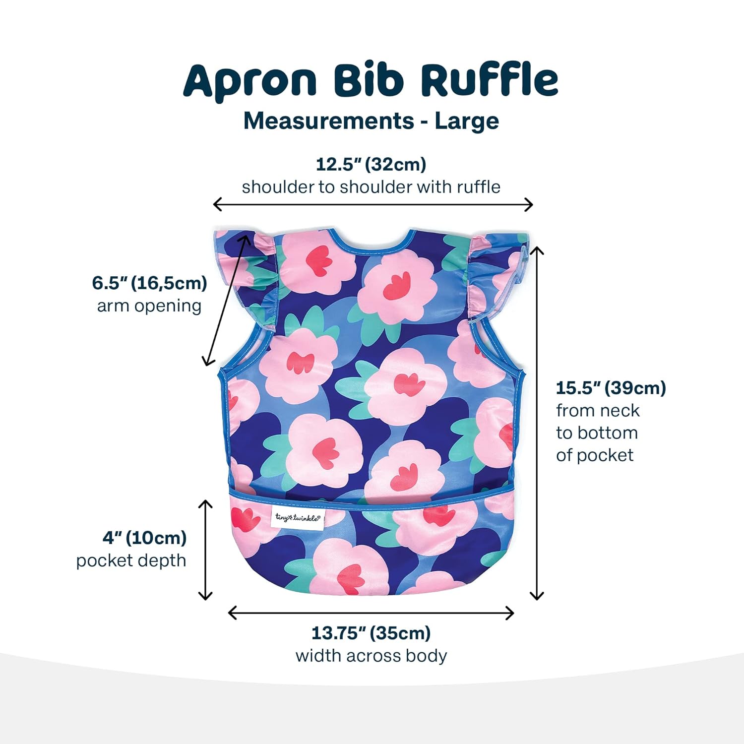 Tiny Twinkle Mess Proof Baby Bib - Waterproof & Lightweight Baby-Led Weaning Apron | 100% Recycled Polyester, Easy Clean & Machine Washable (Floral Blue, Large 2-4 Years)