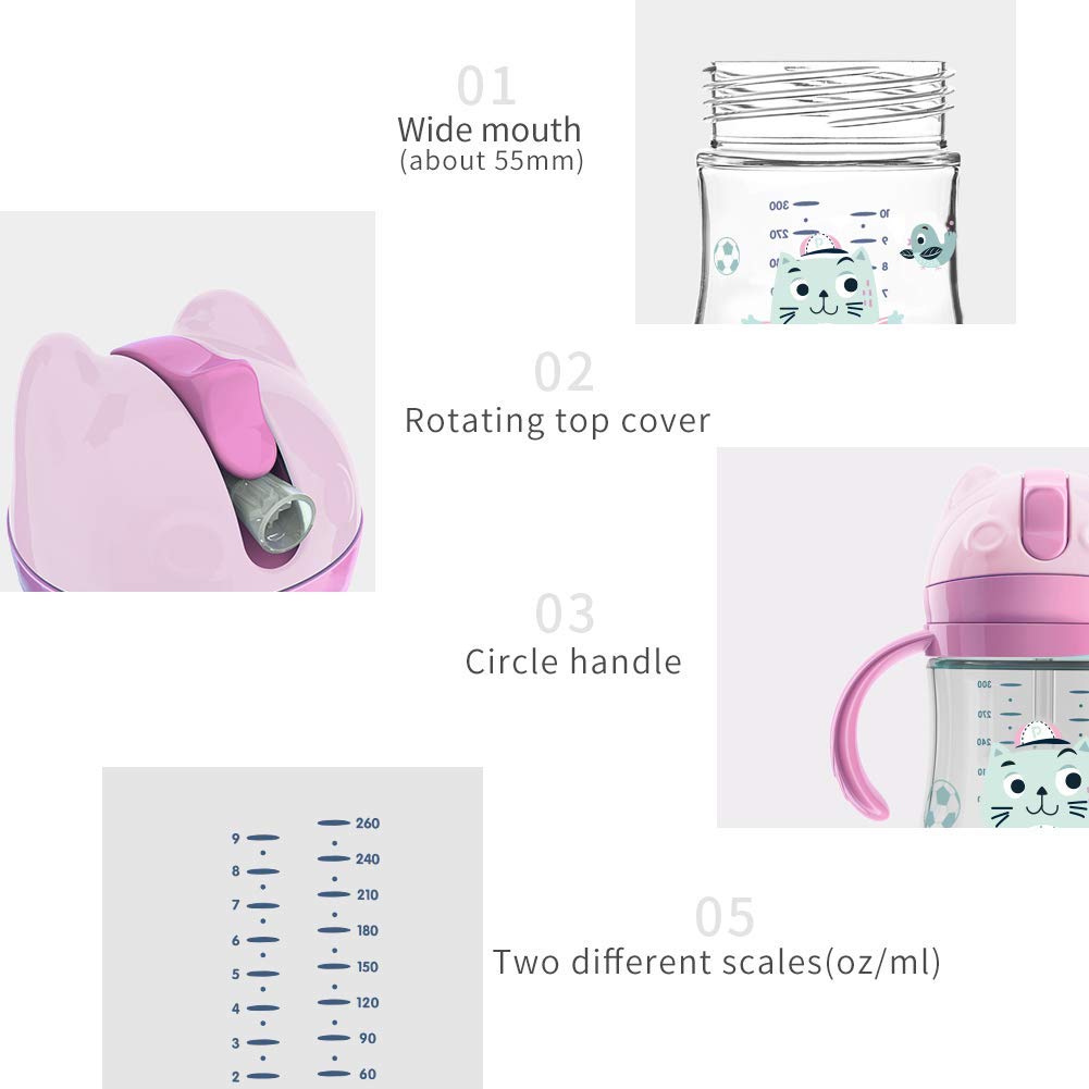 POTATO Toddler Cups Spill Proof Sippy Cup with Handles and Strap, Straw Cups for babies, 240ML/8oz, Pink