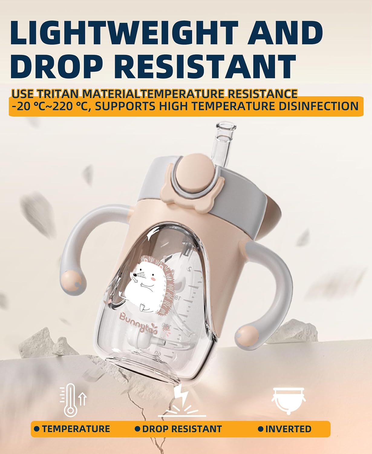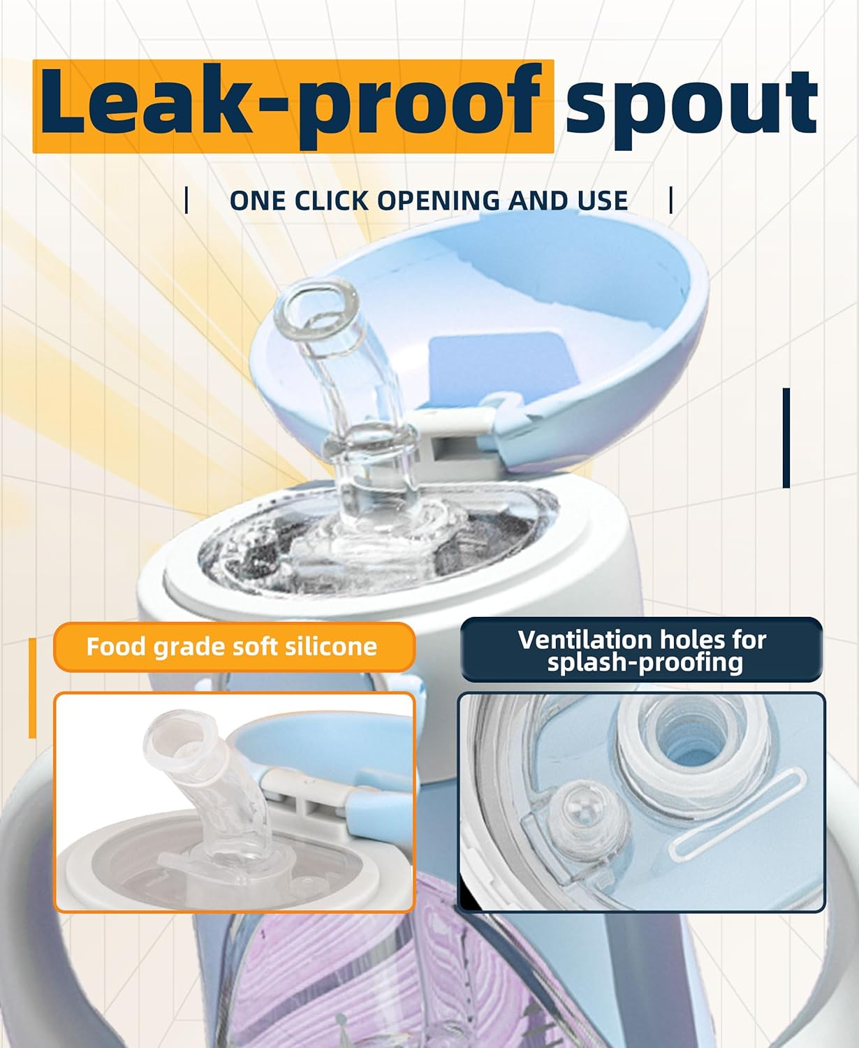 - Self-Feeding Support with Weighted Straw Design: The 360° Gravity Straw adjusts to every angle, helping babies drink comfortably in strollers, car seats, or play areas. Ergonomic handles provide a secure grip, and the 8oz (240ml) capacity reduces frequent refills. Parents appreciate the reliable leak-resistant performance for mess-free hydration.