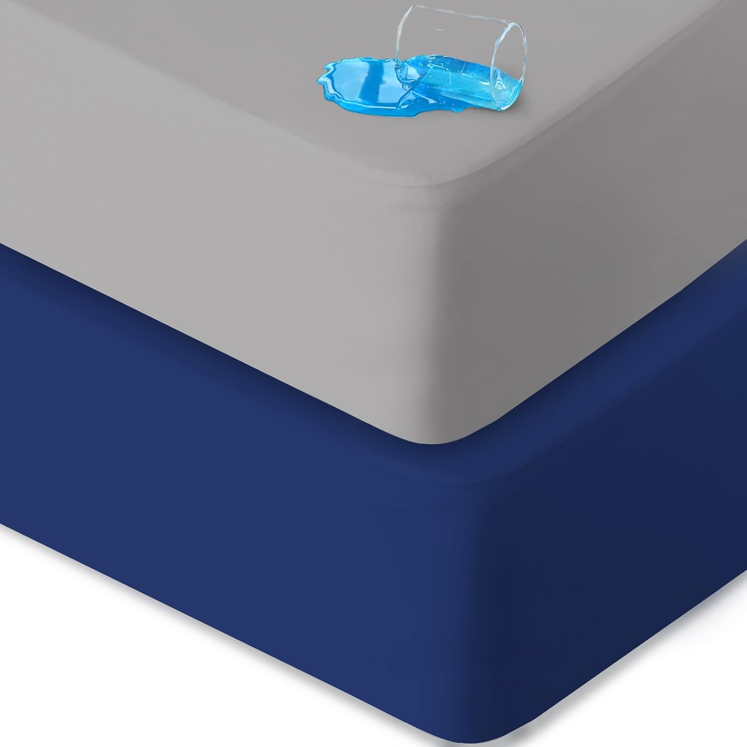 Waterproof Bassinet Sheets Fit for Miclassic, Baby Delight, TCBunny, Milliard, Dream On Me Traveler/Skylar and Other Bedside Sleeper Bassinet Mattress, Ultra Soft Microfiber Sheets, Grey & Navy
