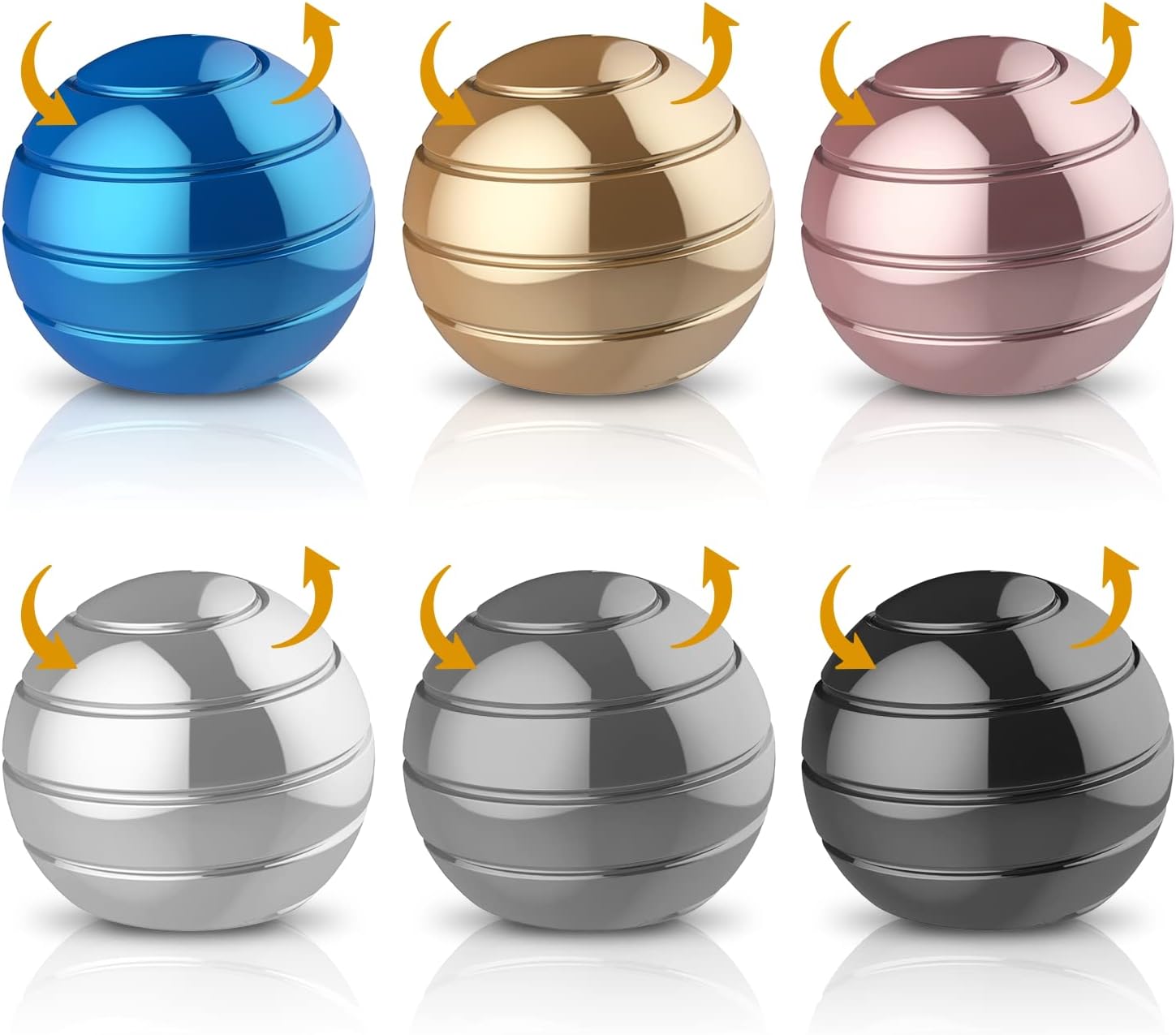 6 Pack Kinetic Spinning Desk Toy Bulk Basket Stocking Stuffers for Kids, Metal Fidget Spinner Ball, Optical Illusion Desktop Fidget Spinner Toys, Gifts for Women, Men, Kids and Adults