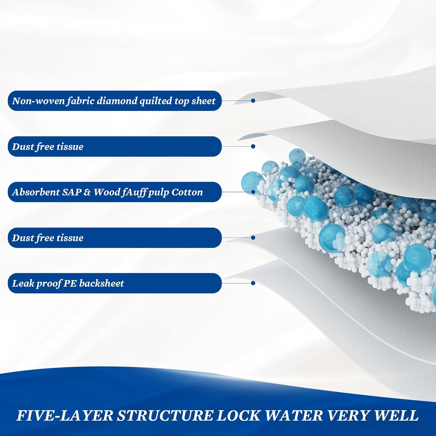 • Leak Protection and Odor control:Reinforced PE back film can stop messy leaks and stains.Gelling polymer quickly locks liquid and odor. Superior moisture and odor control ensure lasting dry and comfort to improve sleep, protecting from rashes