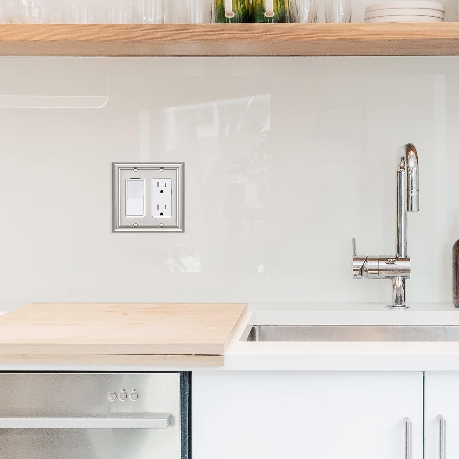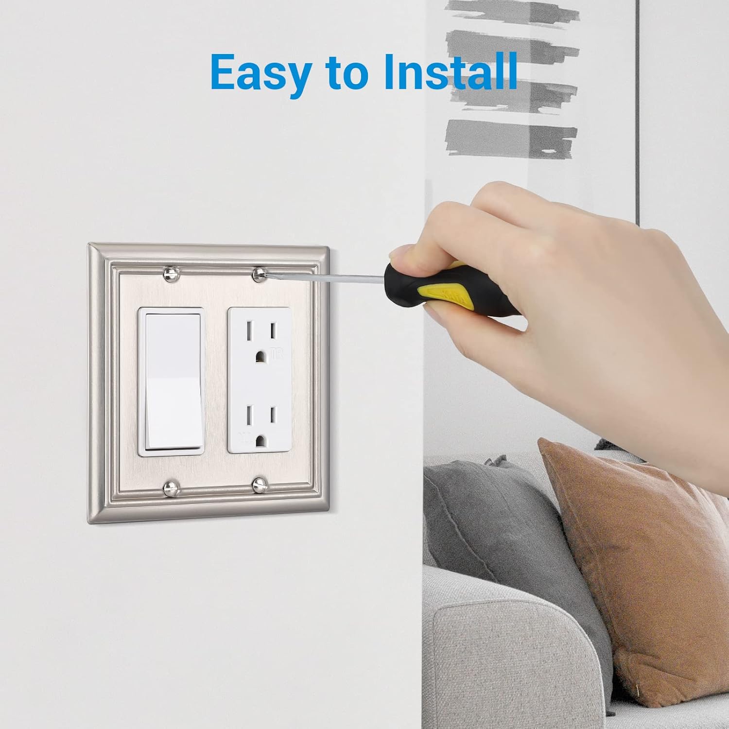 • 【Elegant&Simple Design】Brushed nickel finish fits with texture on the edge, giving your home a nice modern look; making the receptacles or light switches more decorative