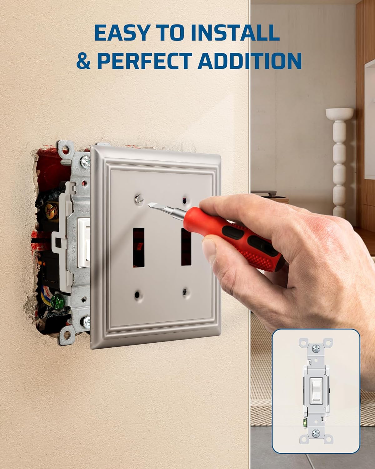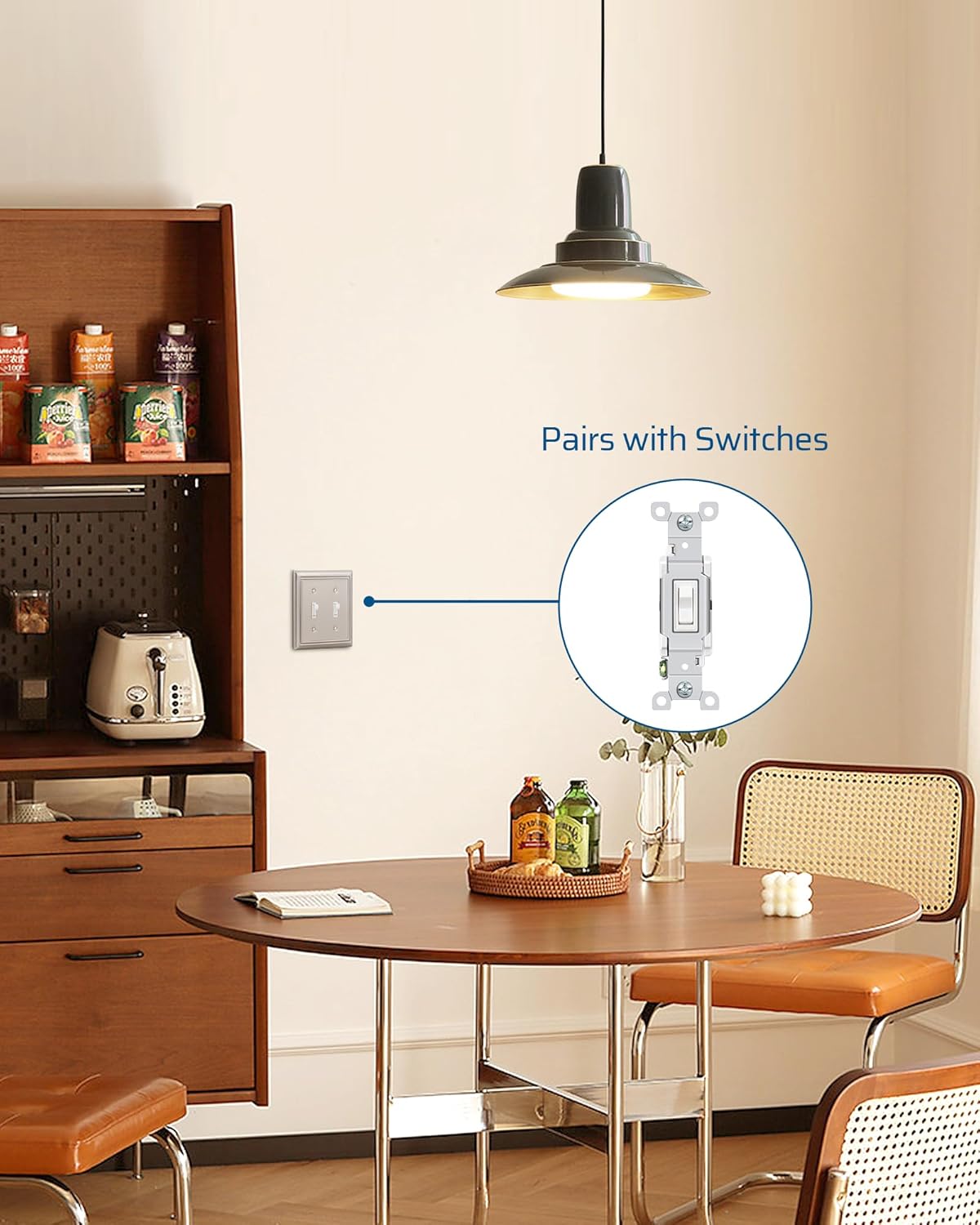 • 【Wide Application】The brushed nickel wall plates match in various formats, can be widely used in dimmer, toggle switch, outlet receptacle, GFCI outlets etc.