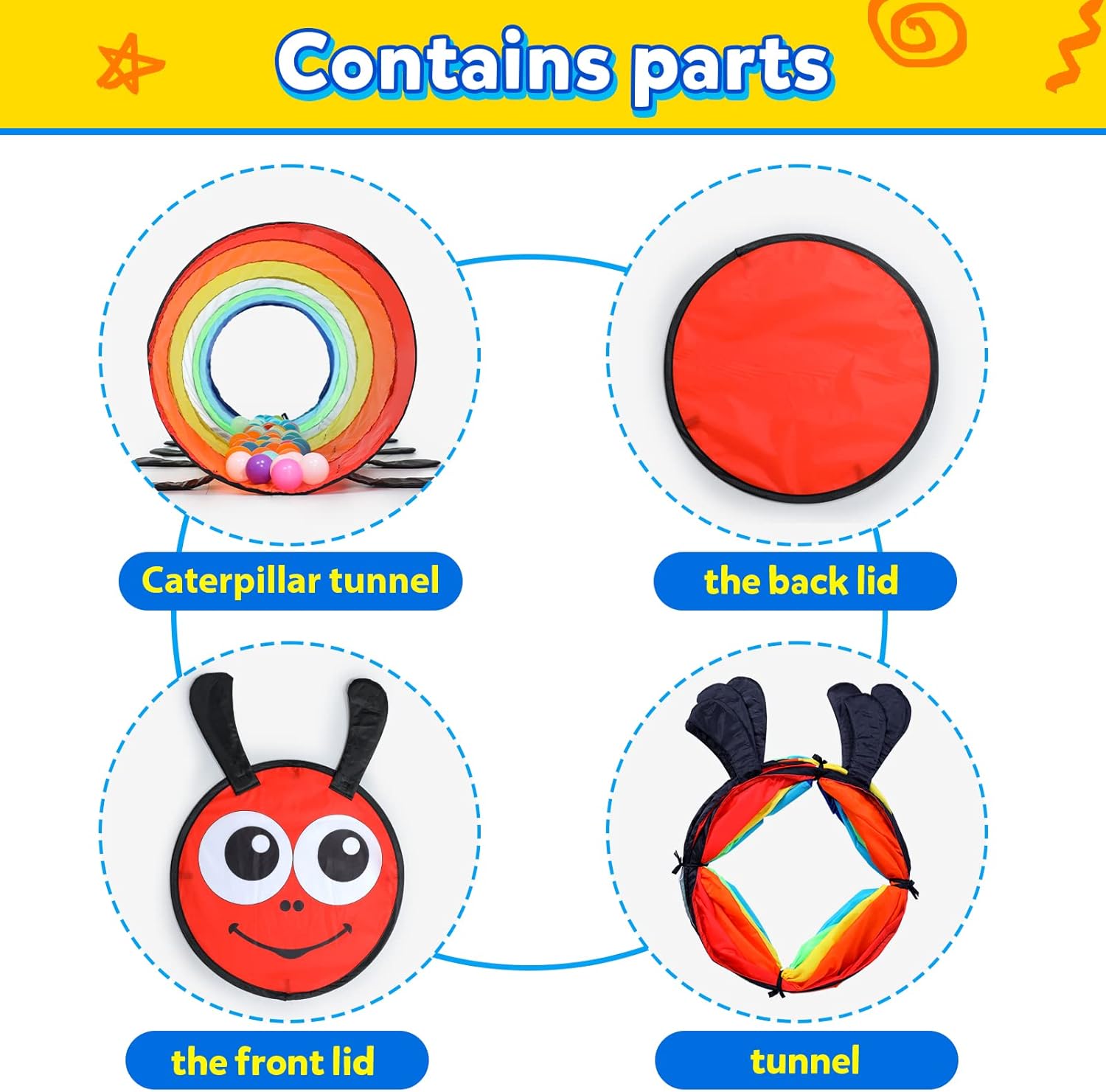 - 【Creative Gifts for Kids】Are you still thinking about what gift to give your kid? Which kid doesn't like colorful, lovely, and practical crawling tunnels? This is definitely the best gift choice for birthdays, Christmas, Halloween, Thanksgiving, and making surprises. This kids tunnel indoor and outdoor is suitable for little kids above 3.
