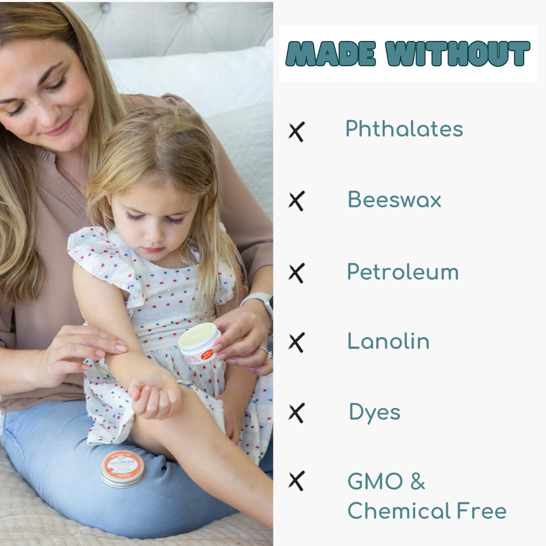 • A balm for all seasons - Whether your child has dry, sensitive, or delicate skin, this gentle baby moisturizer is perfect. You can use it on cuts, scuffs, chapped lips, elbows, cradle cap, cuticles and baby acne.
