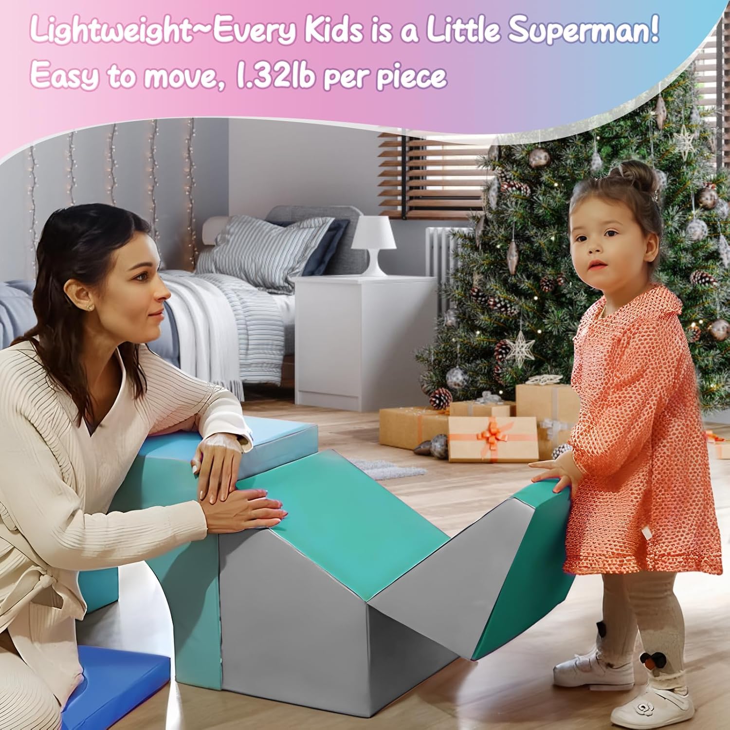 SURPCOS Foam Climbing Blocks for Toddlers - Soft Play Set for Toddlers 1-3 - Climbing Toys - Baby Climbing Gym Foam - with Slide Stairs and Tunnel - Great for All Ages (6 Pc Blue Soft Play Area Set)